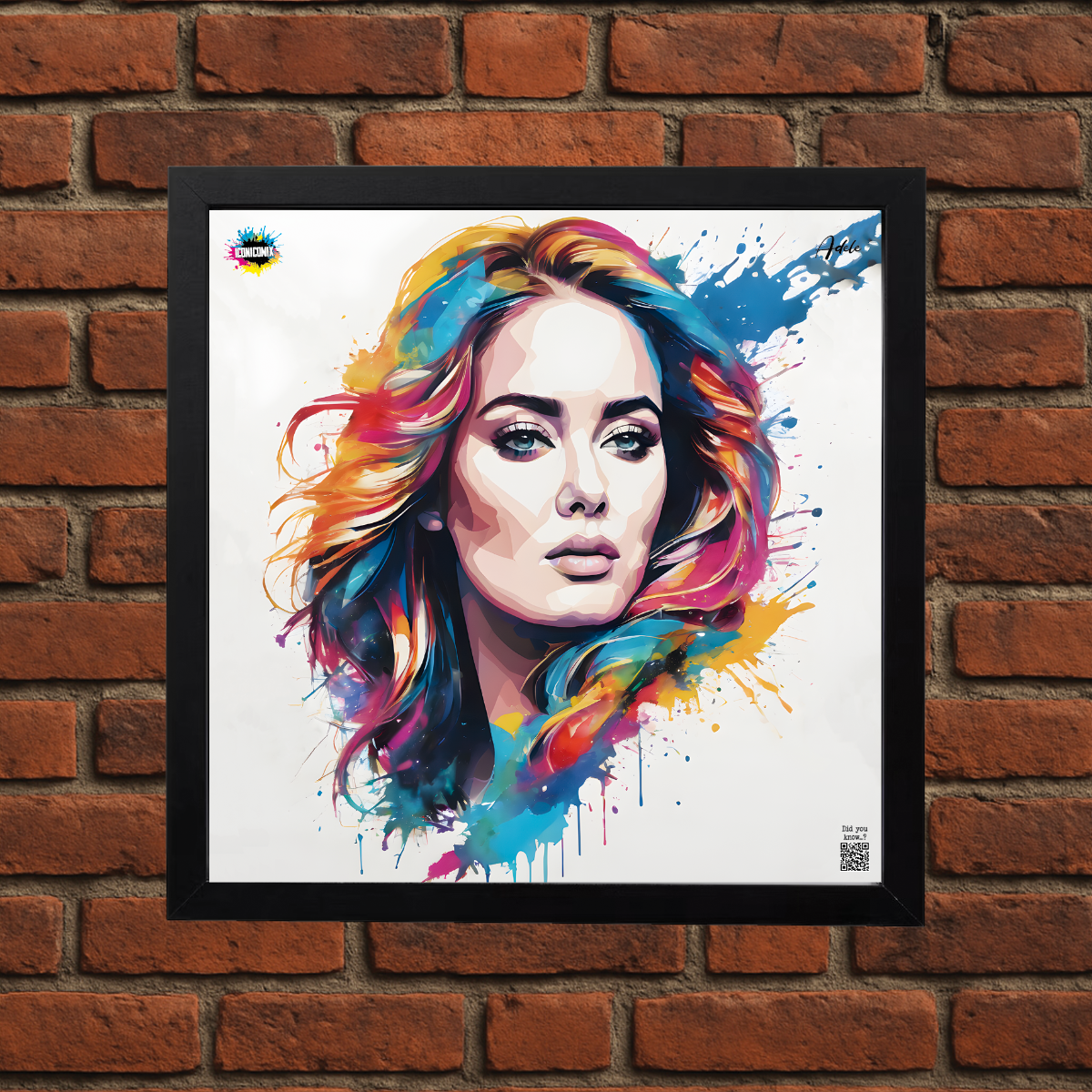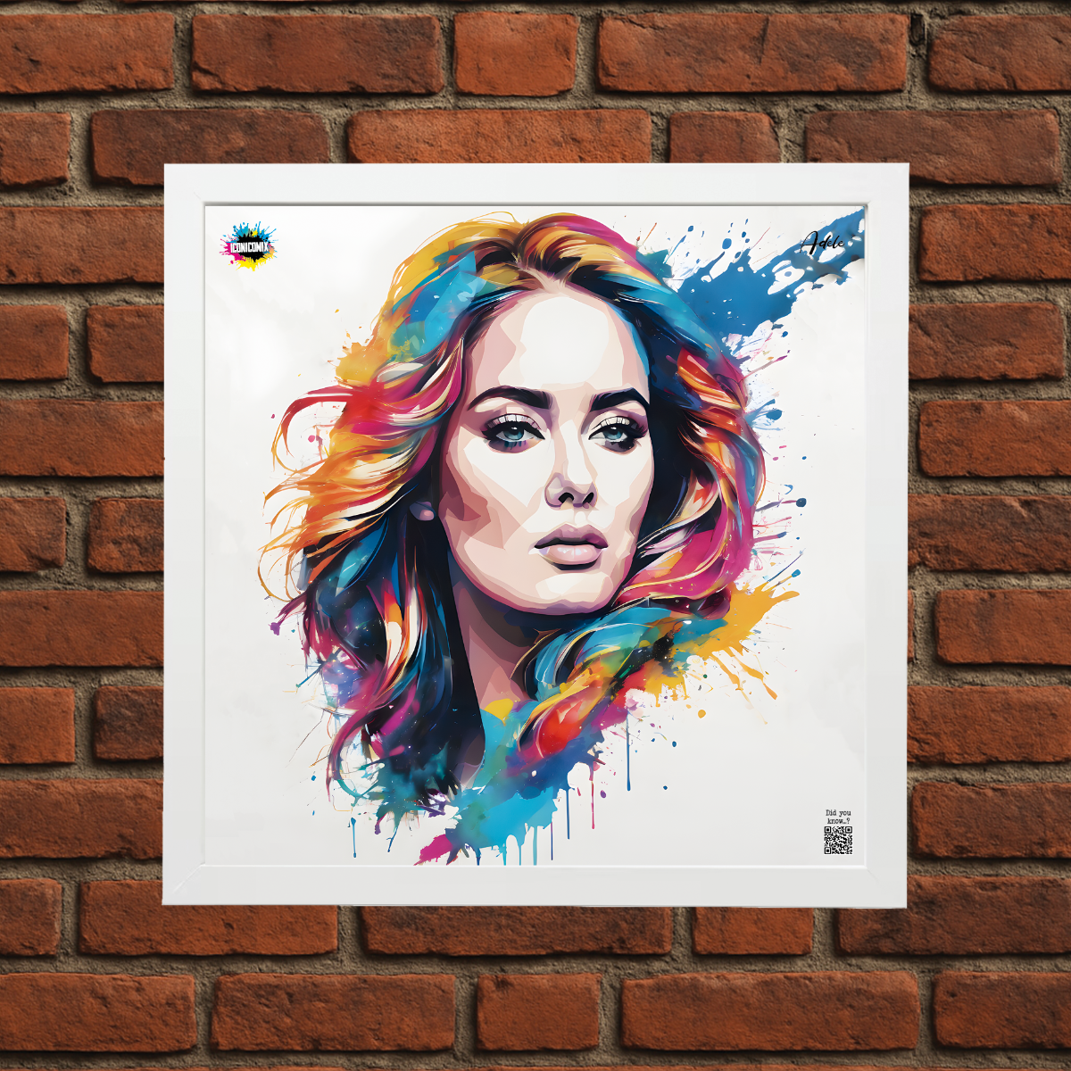 In ogni nostra grafica è presente anche un QR code che reindirizza al sito iconicomix.com, alla pagina ufficiale dell’icona che hai scelto. Una porta digitale che racconta la sua storia, le sue frasi e il suo mondo.