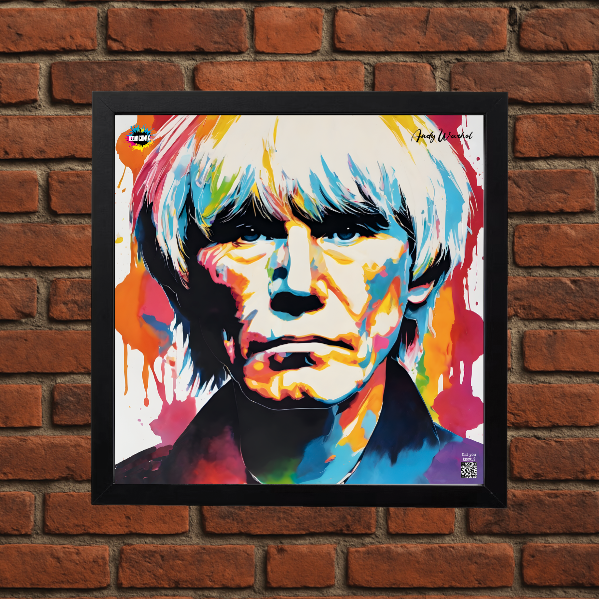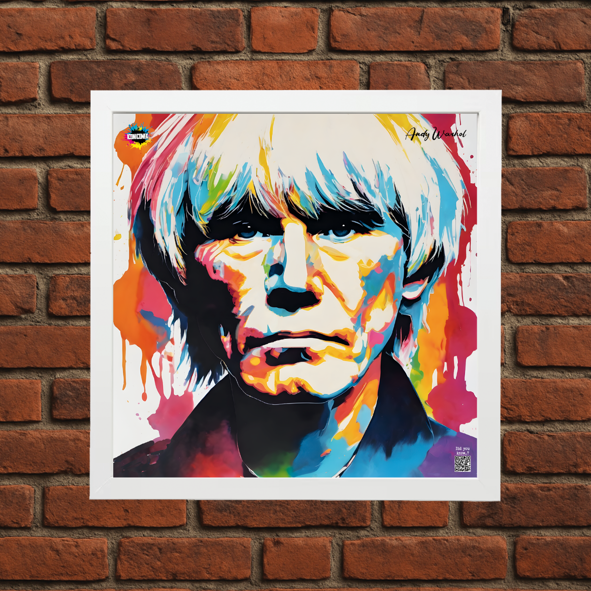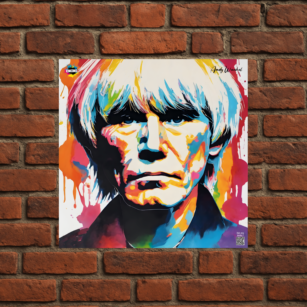 In ogni nostra grafica è presente anche un QR code che reindirizza al sito iconicomix.com, alla pagina ufficiale dell’icona che hai scelto. Una porta digitale che racconta la sua storia, le sue frasi e il suo mondo.