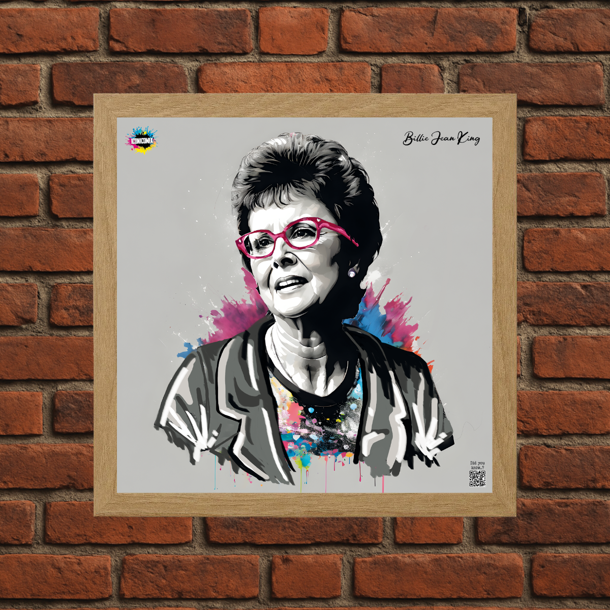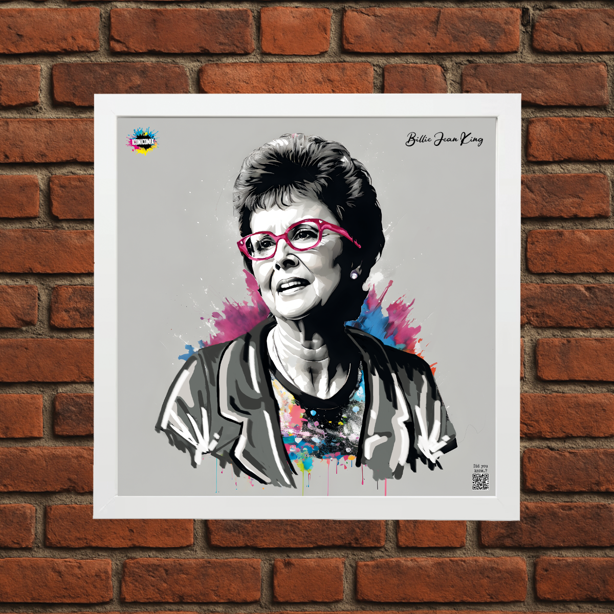 Chacun de nos visuels comporte également un code QR qui vous redirige vers le site web iconicomix.com, la page officielle de l'icône choisie. Une passerelle numérique qui vous dévoile son histoire, ses slogans et son univers.