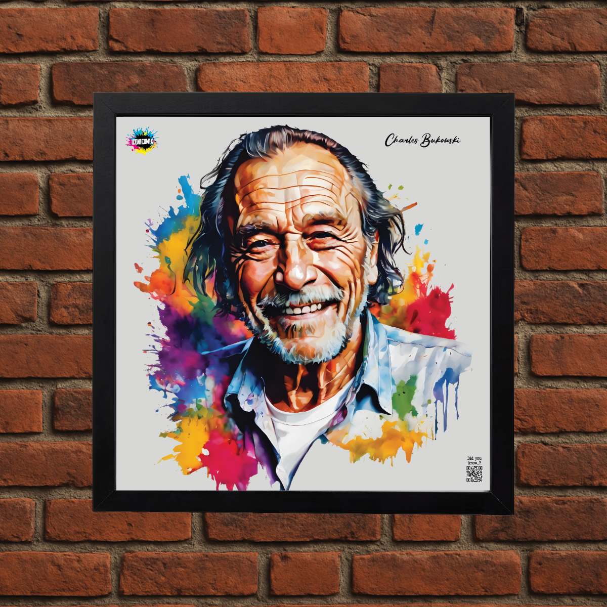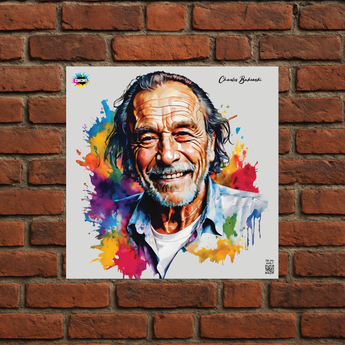 In ogni nostra grafica è presente anche un QR code che reindirizza al sito iconicomix.com, alla pagina ufficiale dell’icona che hai scelto. Una porta digitale che racconta la sua storia, le sue frasi e il suo mondo.