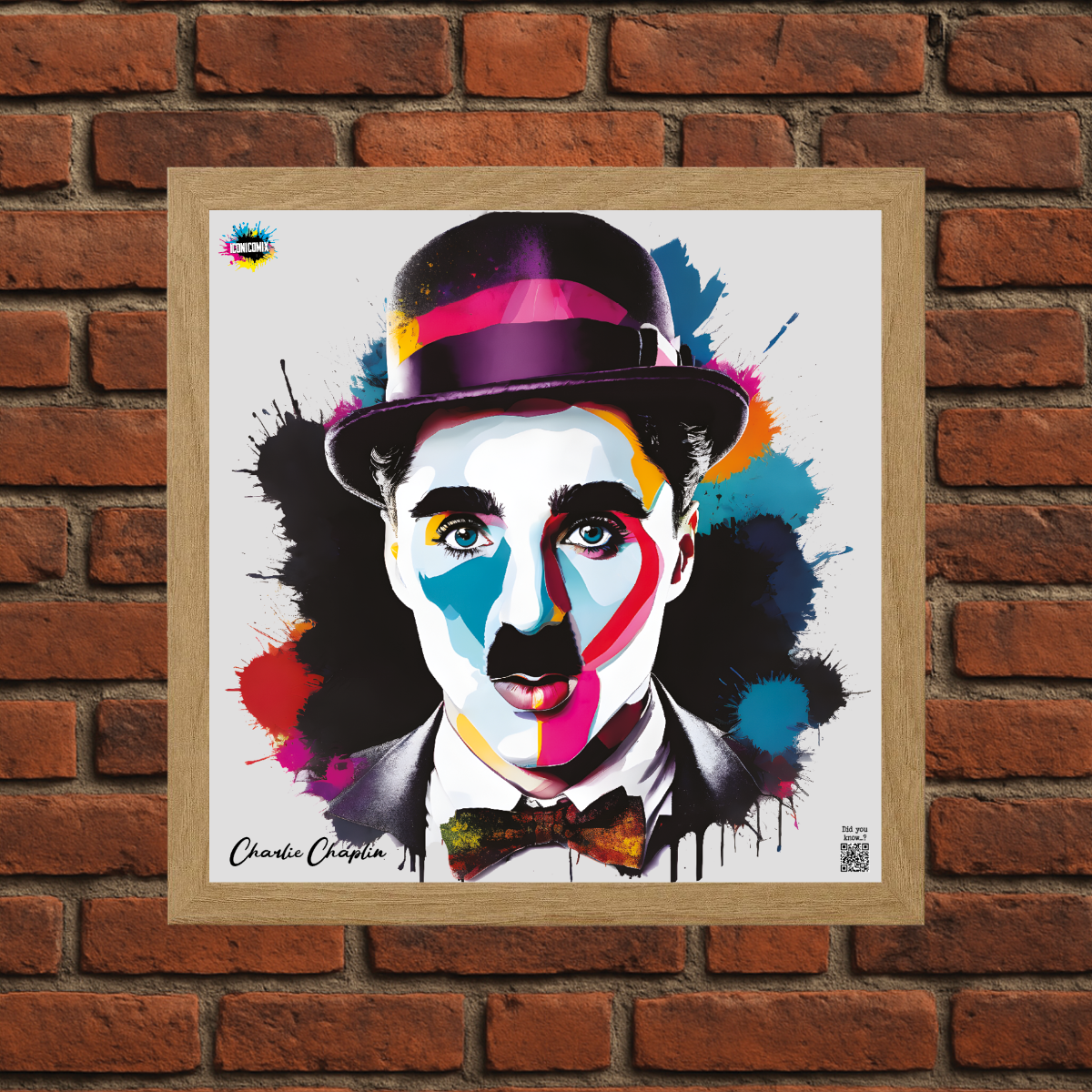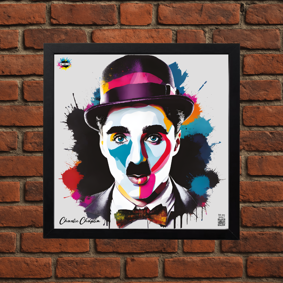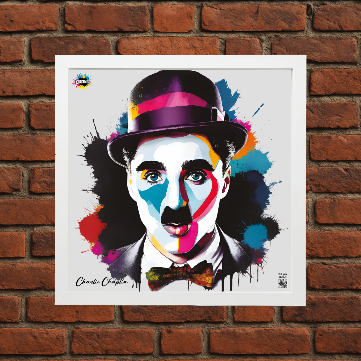 In ogni nostra grafica è presente anche un QR code che reindirizza al sito iconicomix.com, alla pagina ufficiale dell’icona che hai scelto. Una porta digitale che racconta la sua storia, le sue frasi e il suo mondo.