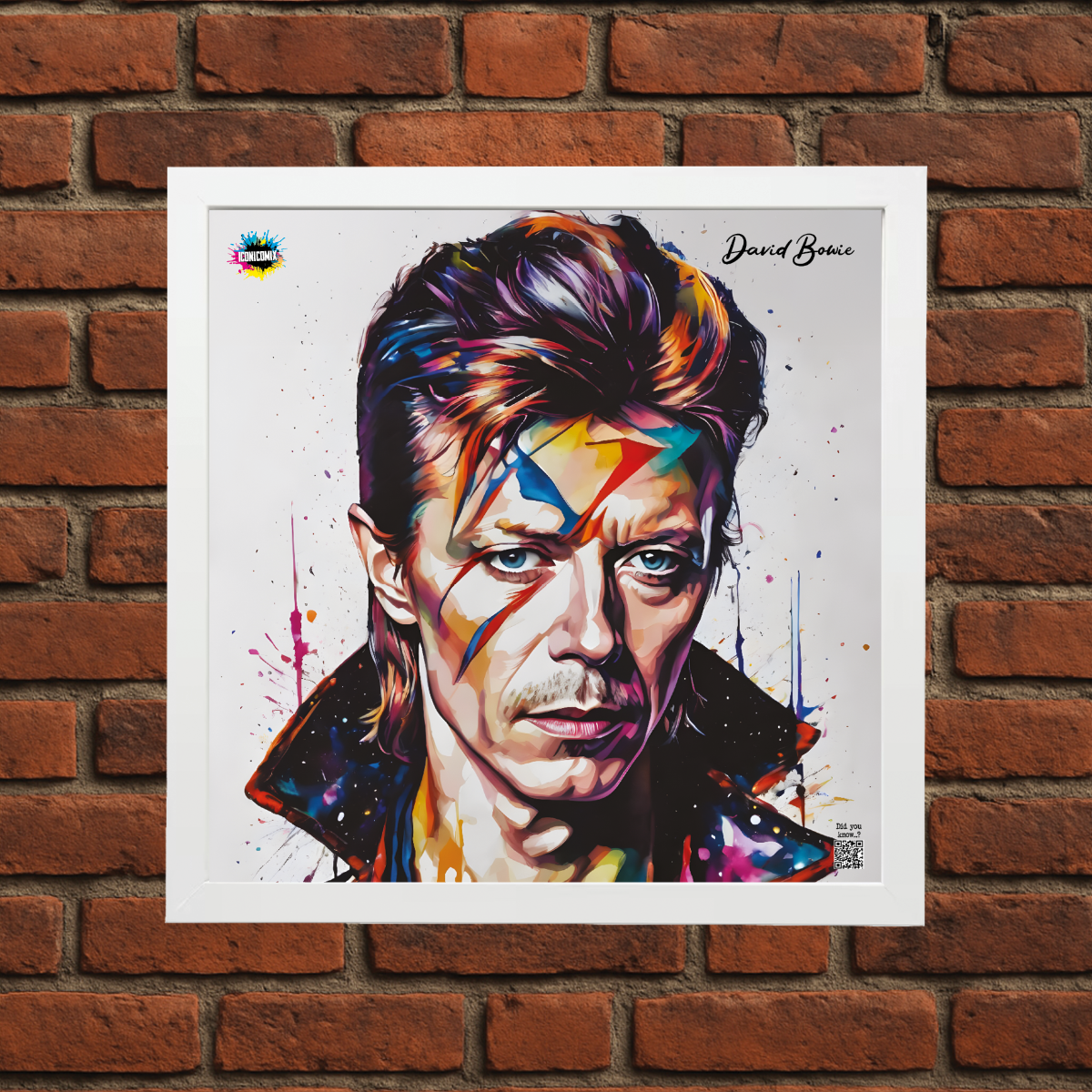 In ogni nostra grafica è presente anche un QR code che reindirizza al sito iconicomix.com, alla pagina ufficiale dell’icona che hai scelto. Una porta digitale che racconta la sua storia, le sue frasi e il suo mondo.