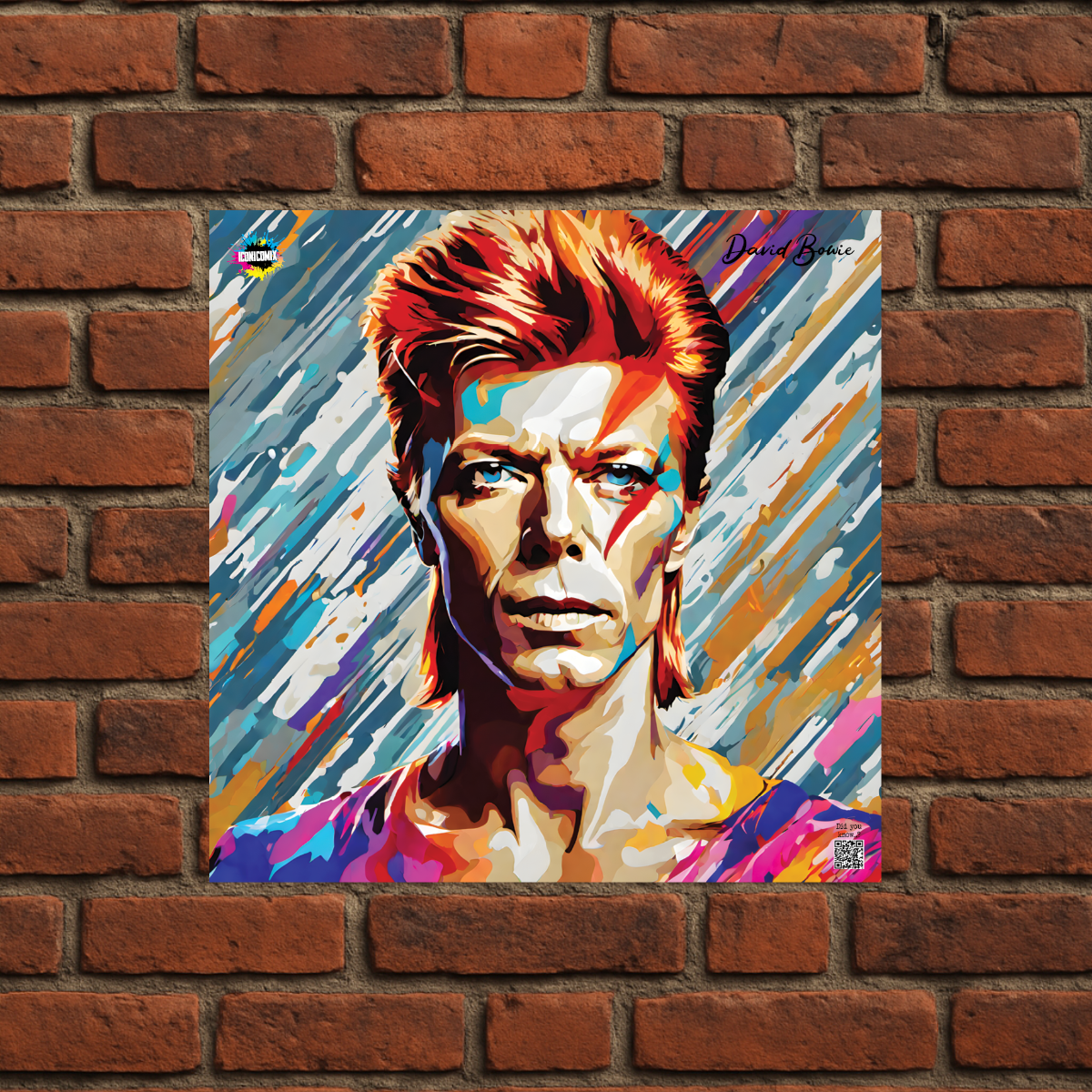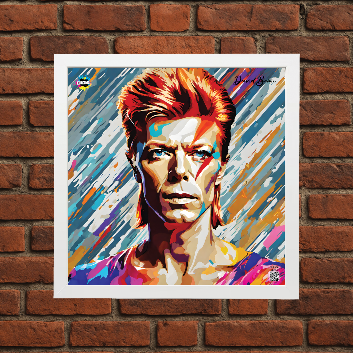 In ogni nostra grafica è presente anche un QR code che reindirizza al sito iconicomix.com, alla pagina ufficiale dell’icona che hai scelto. Una porta digitale che racconta la sua storia, le sue frasi e il suo mondo.
