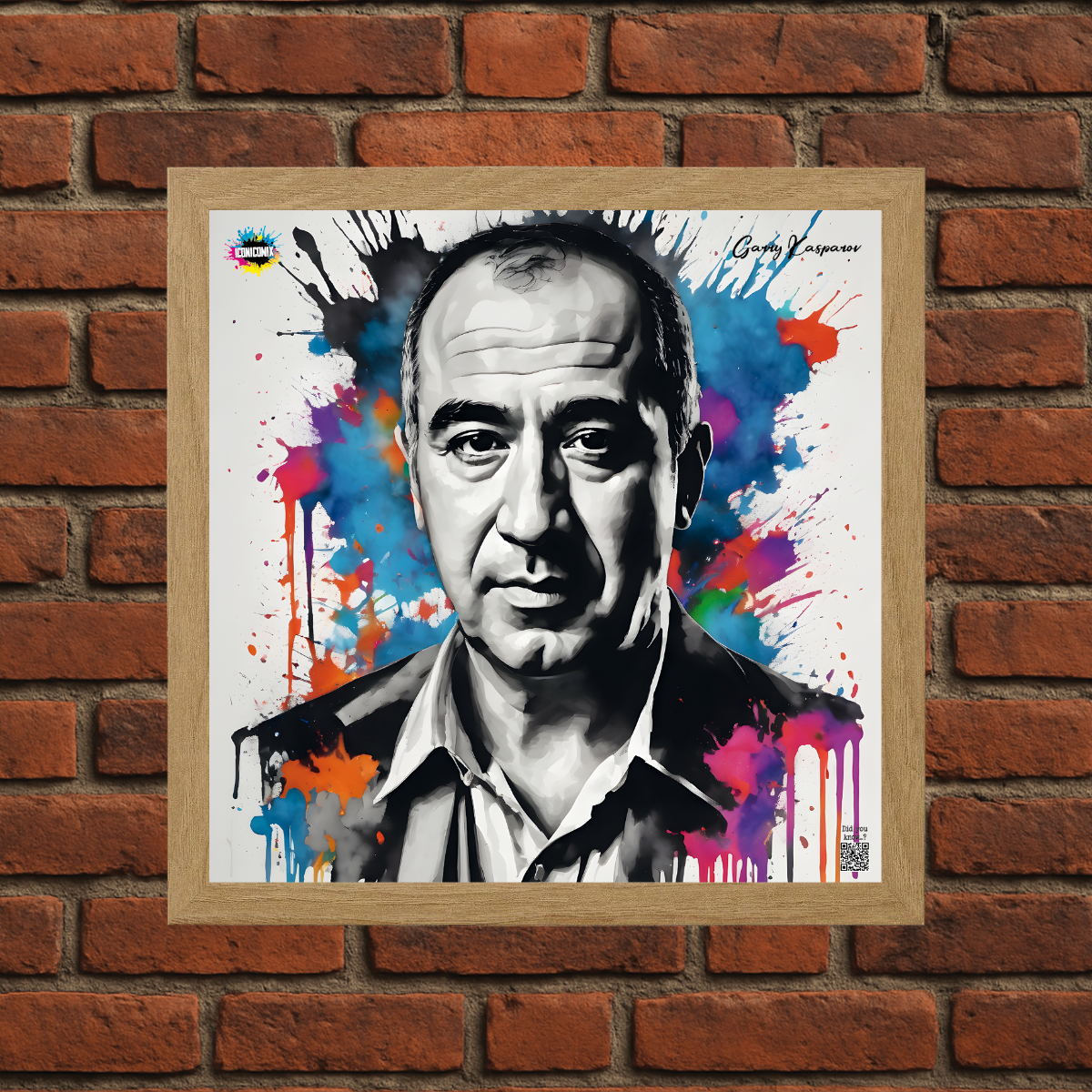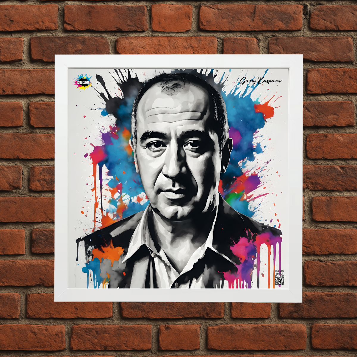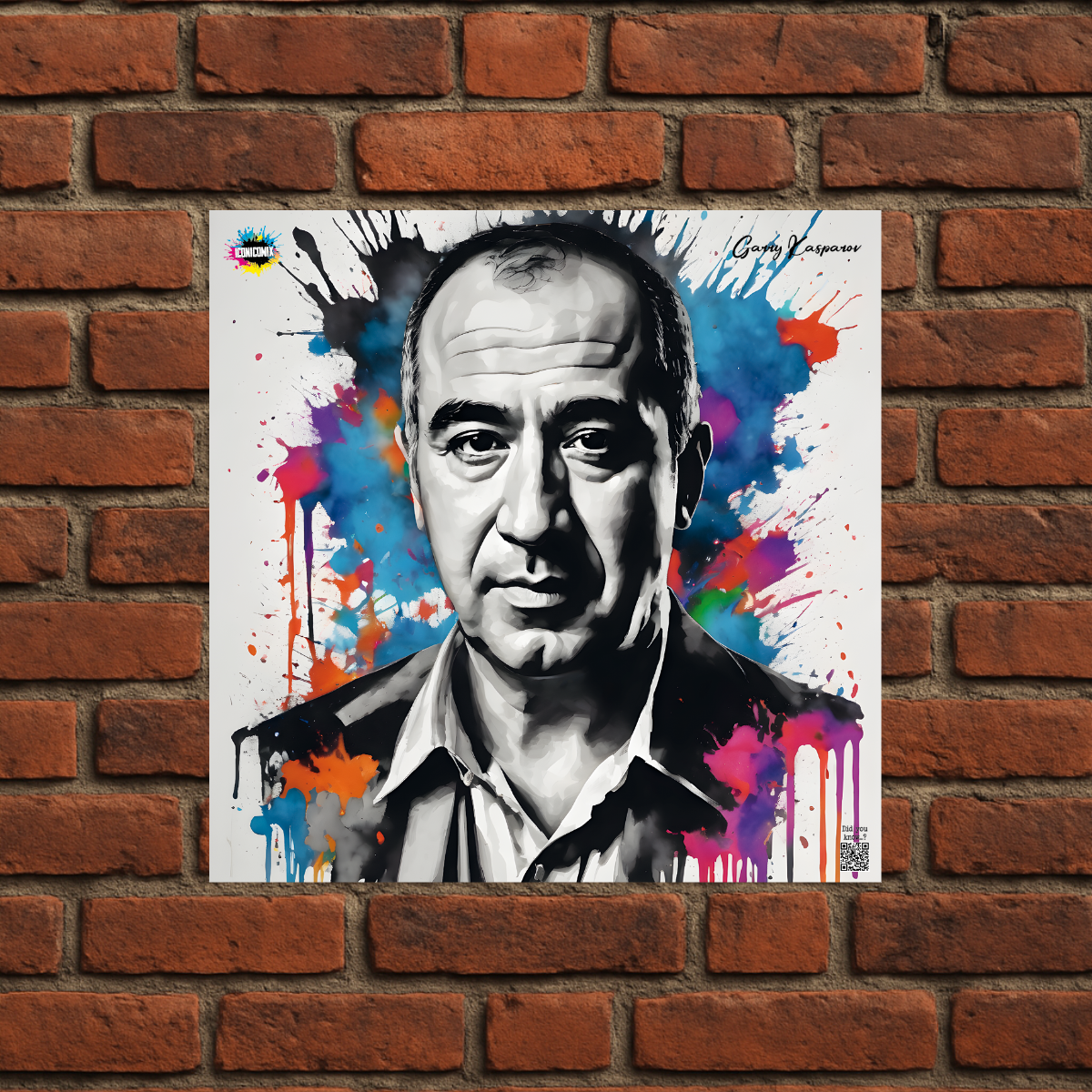 In ogni nostra grafica è presente anche un QR code che reindirizza al sito iconicomix.com, alla pagina ufficiale dell’icona che hai scelto. Una porta digitale che racconta la sua storia, le sue frasi e il suo mondo.