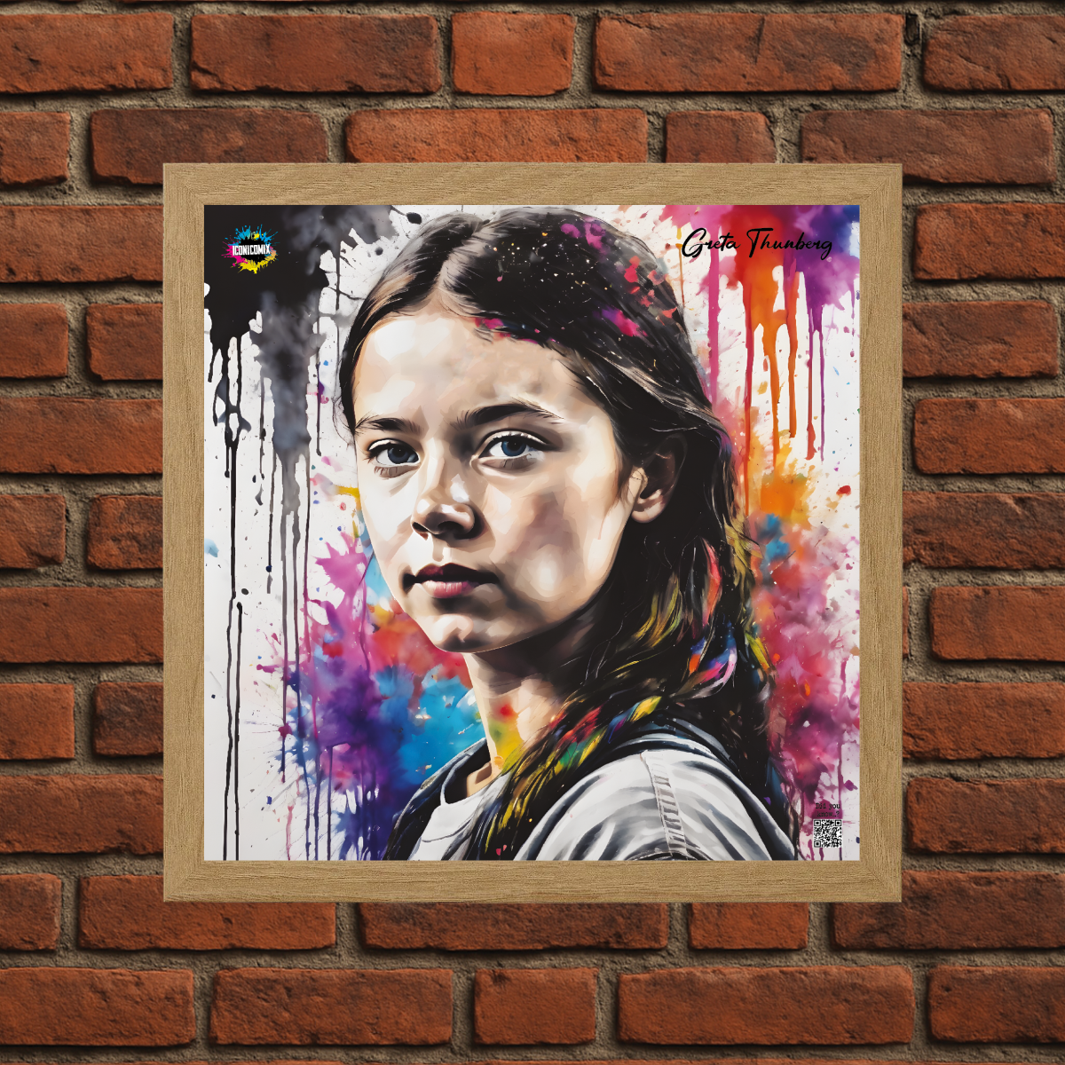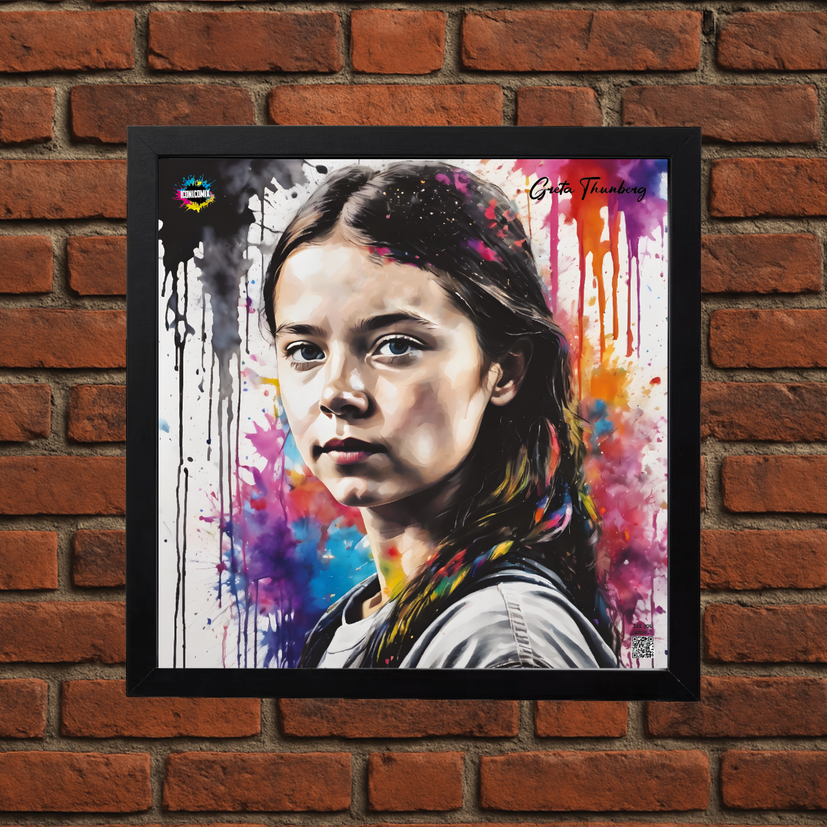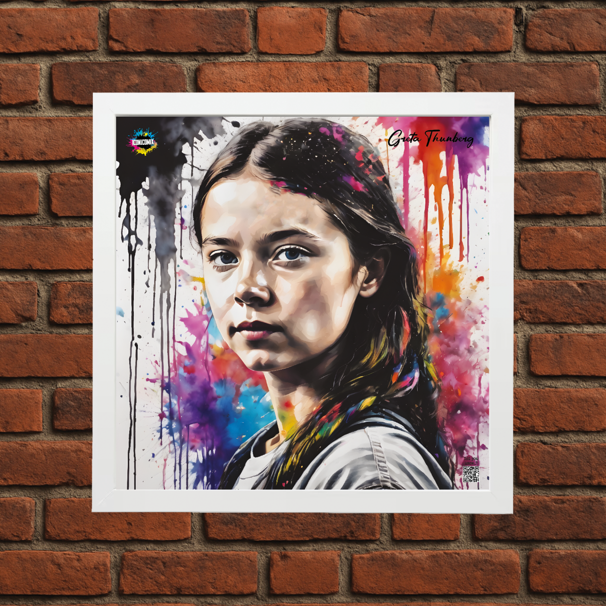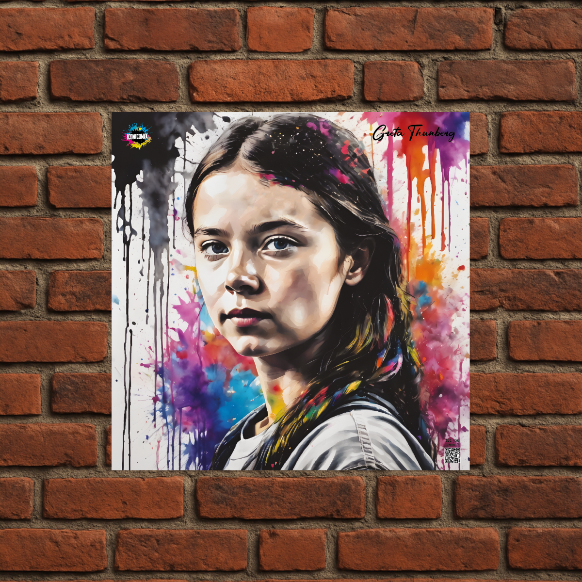 In ogni nostra grafica è presente anche un QR code che reindirizza al sito iconicomix.com, alla pagina ufficiale dell’icona che hai scelto. Una porta digitale che racconta la sua storia, le sue frasi e il suo mondo.