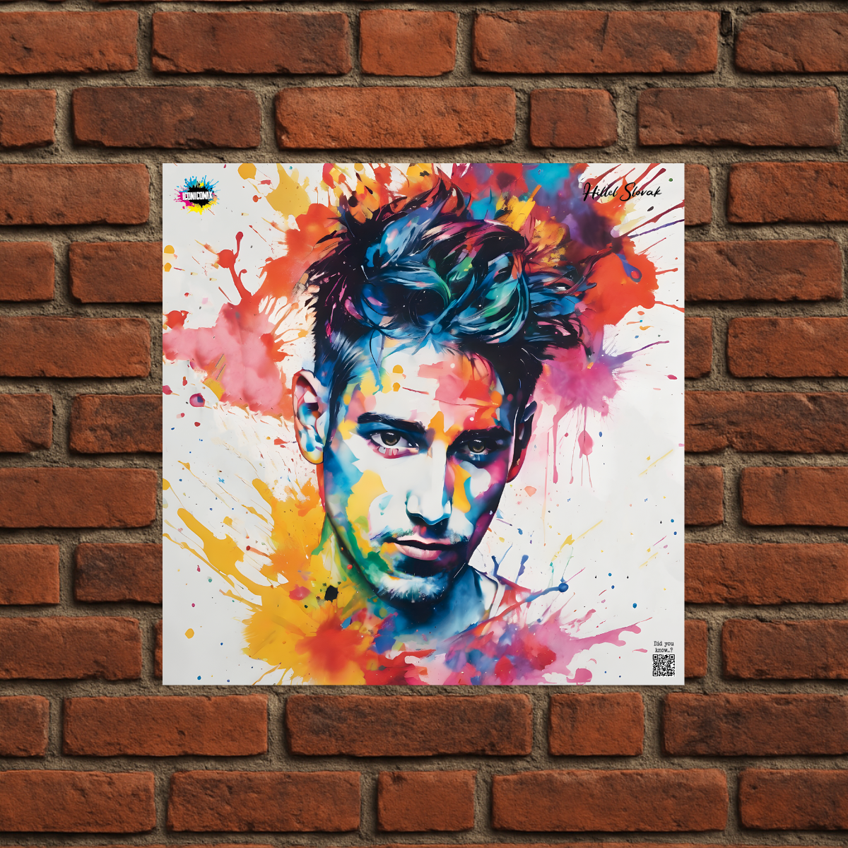 In ogni nostra grafica è presente anche un QR code che reindirizza al sito iconicomix.com, alla pagina ufficiale dell’icona che hai scelto. Una porta digitale che racconta la sua storia, le sue frasi e il suo mondo.