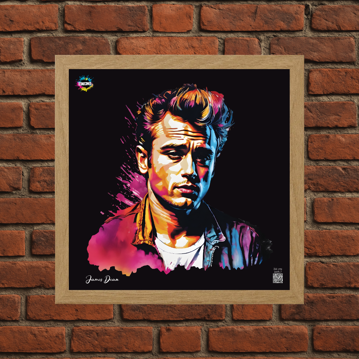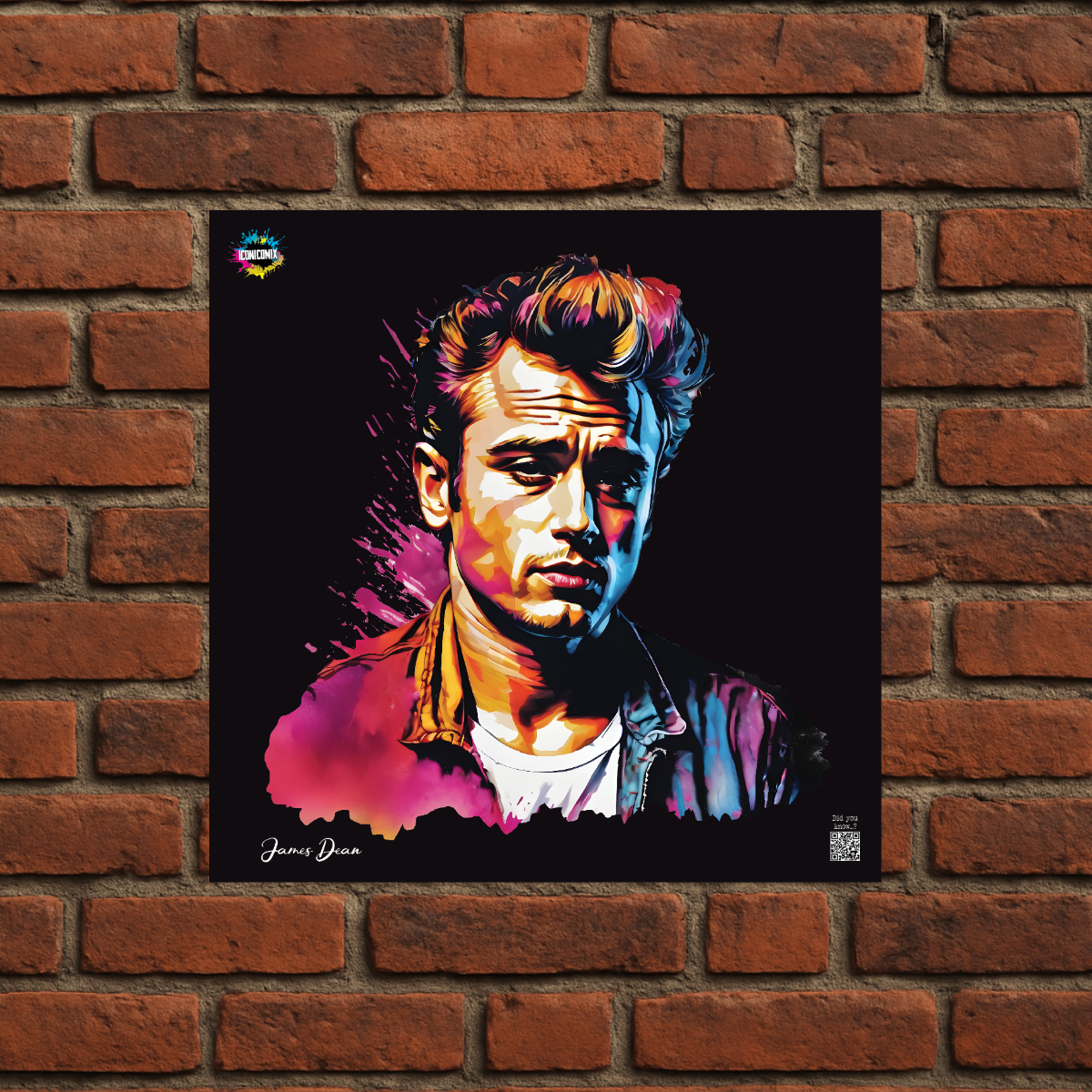In ogni nostra grafica è presente anche un QR code che reindirizza al sito iconicomix.com, alla pagina ufficiale dell’icona che hai scelto. Una porta digitale che racconta la sua storia, le sue frasi e il suo mondo.