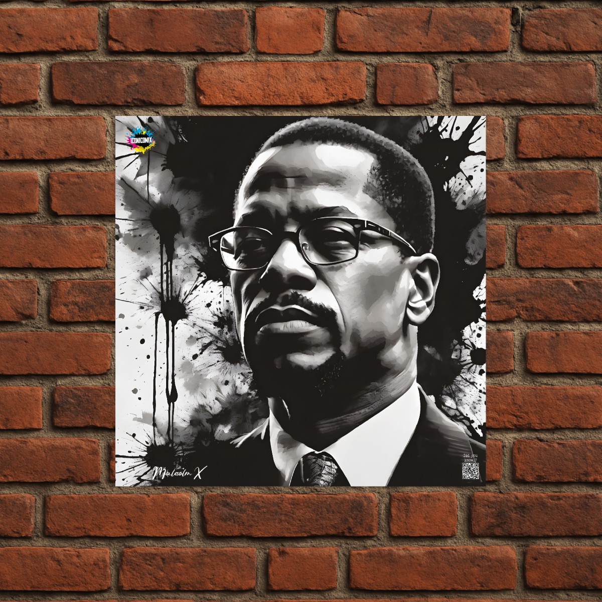 Chacun de nos visuels comporte également un code QR qui vous redirige vers le site web iconicomix.com, la page officielle de l'icône choisie. Une passerelle numérique qui vous dévoile son histoire, ses slogans et son univers.
