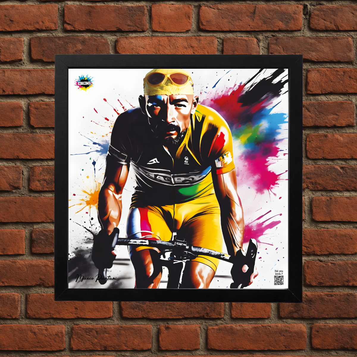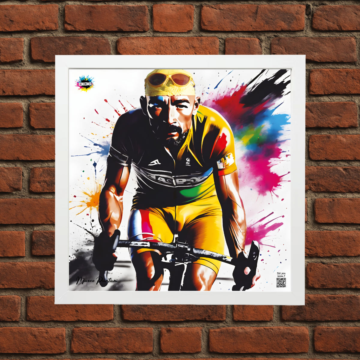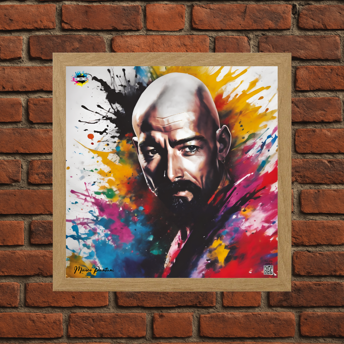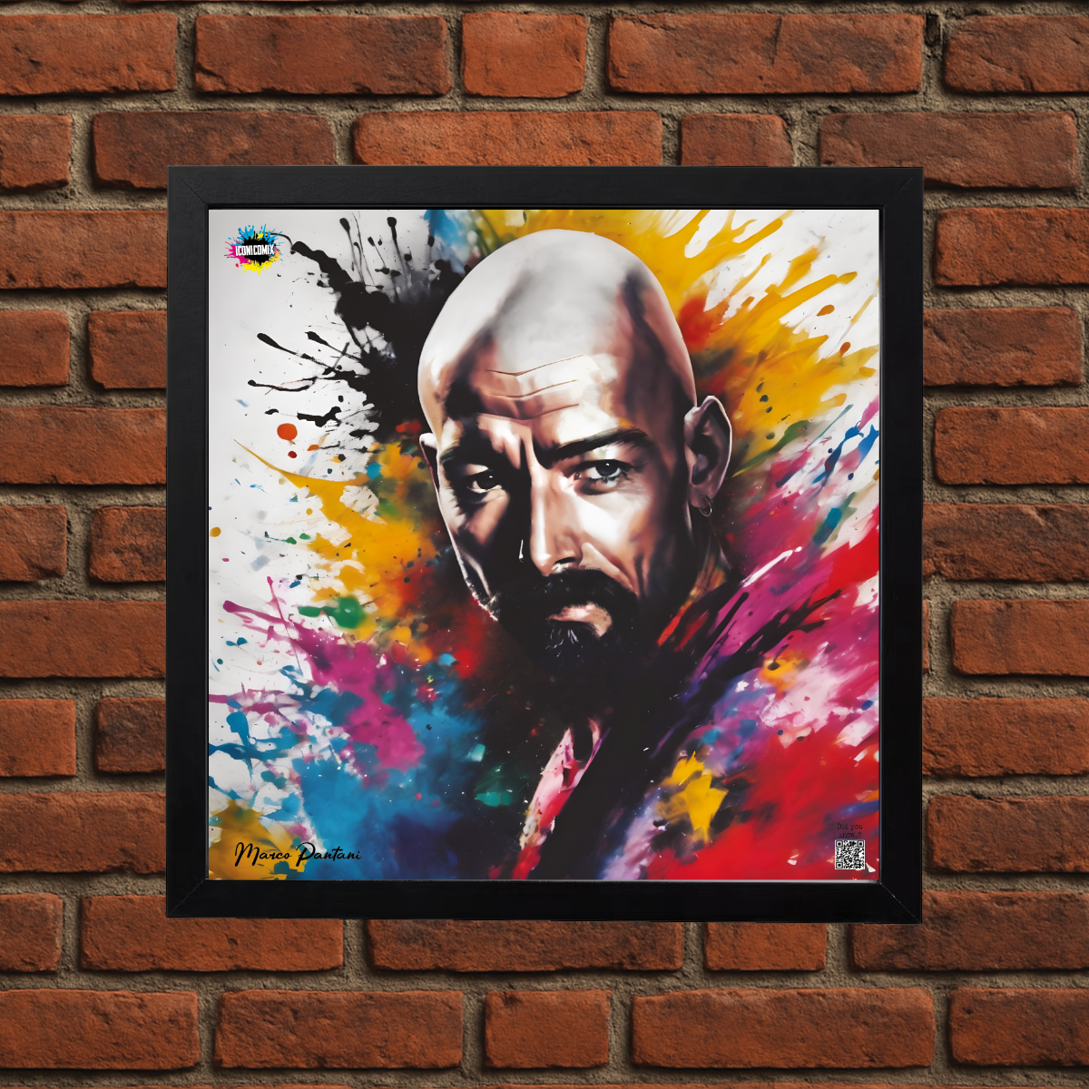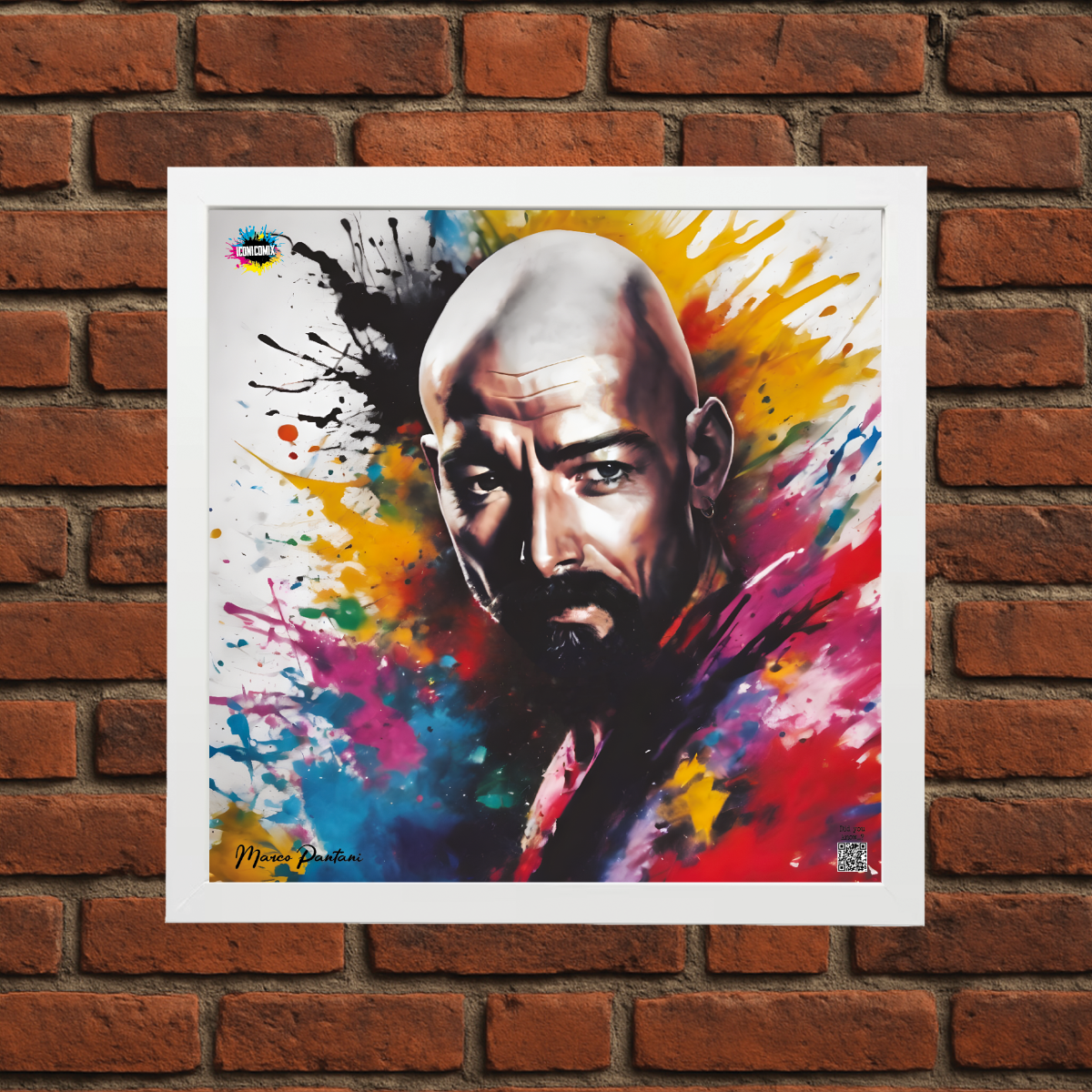 In ogni nostra grafica è presente anche un QR code che reindirizza al sito iconicomix.com, alla pagina ufficiale dell’icona che hai scelto. Una porta digitale che racconta la sua storia, le sue frasi e il suo mondo.