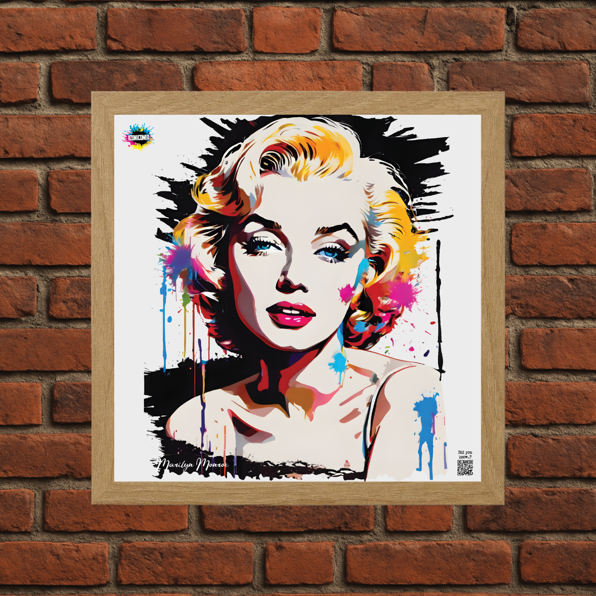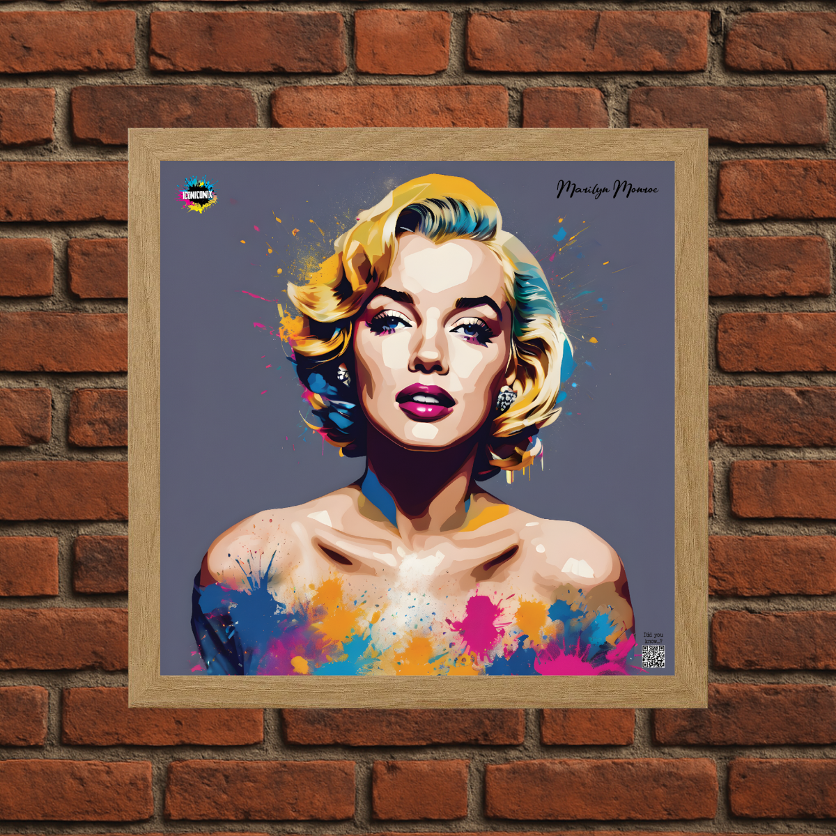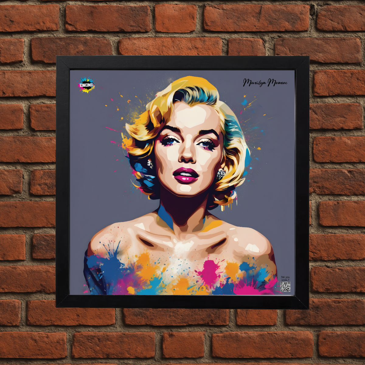 In ogni nostra grafica è presente anche un QR code che reindirizza al sito iconicomix.com, alla pagina ufficiale dell’icona che hai scelto. Una porta digitale che racconta la sua storia, le sue frasi e il suo mondo.