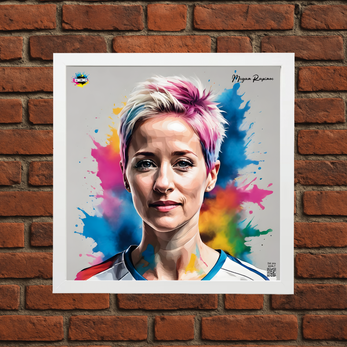 In ogni nostra grafica è presente anche un QR code che reindirizza al sito iconicomix.com, alla pagina ufficiale dell’icona che hai scelto. Una porta digitale che racconta la sua storia, le sue frasi e il suo mondo.