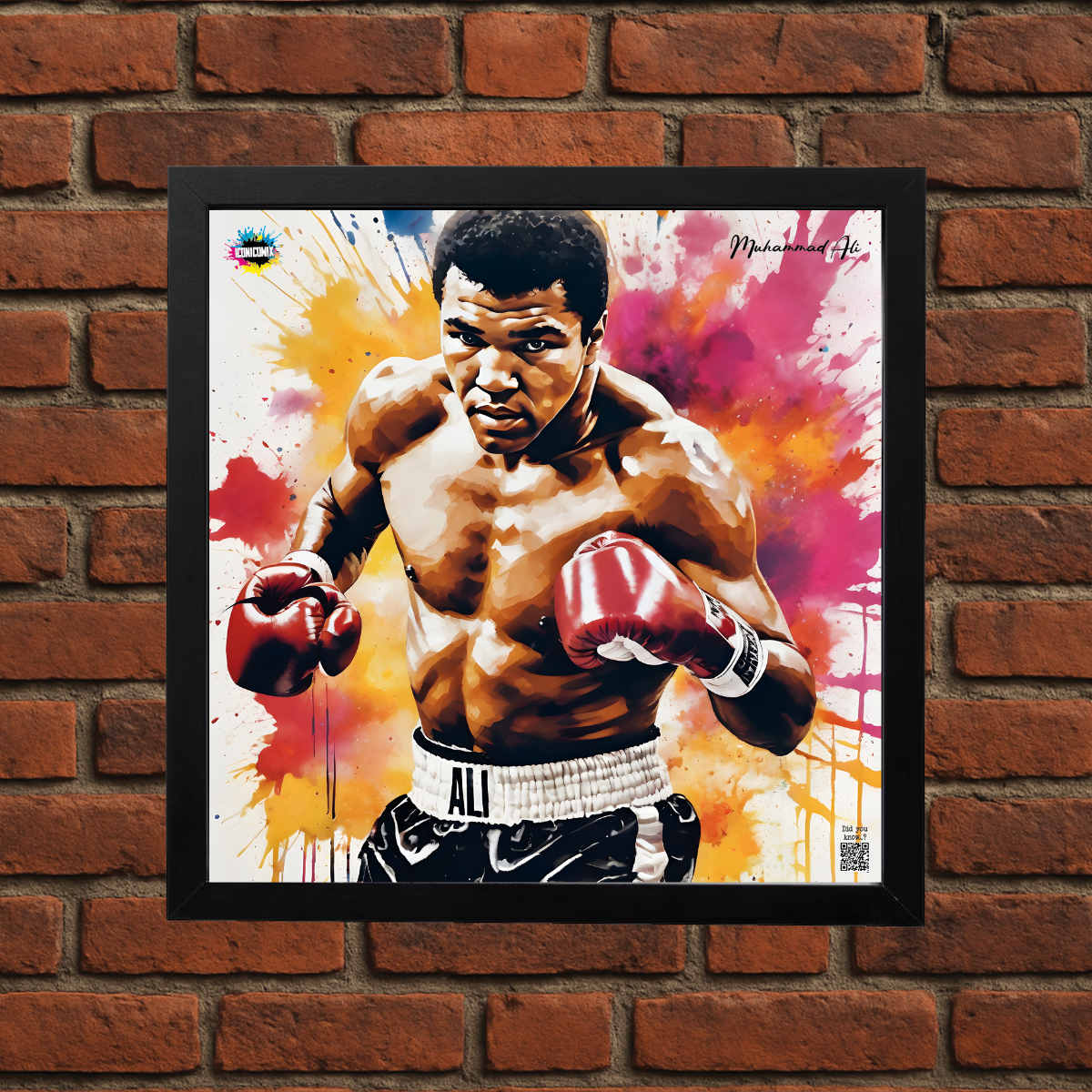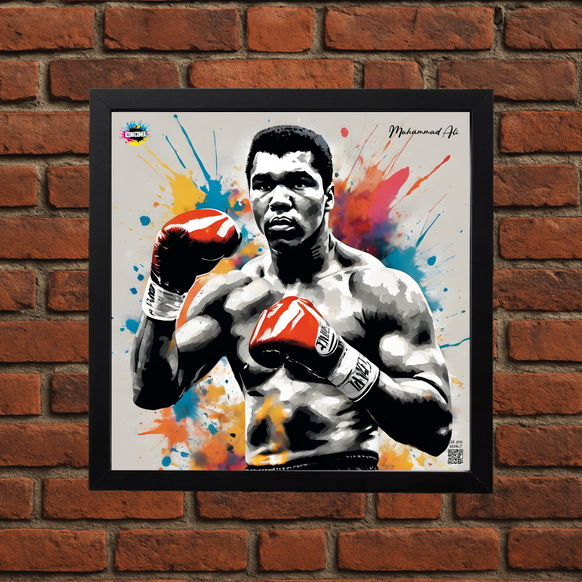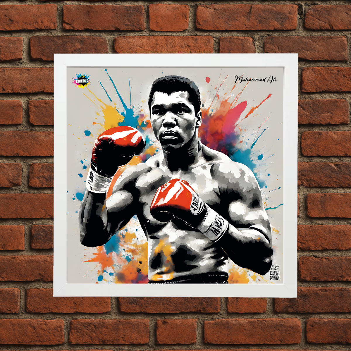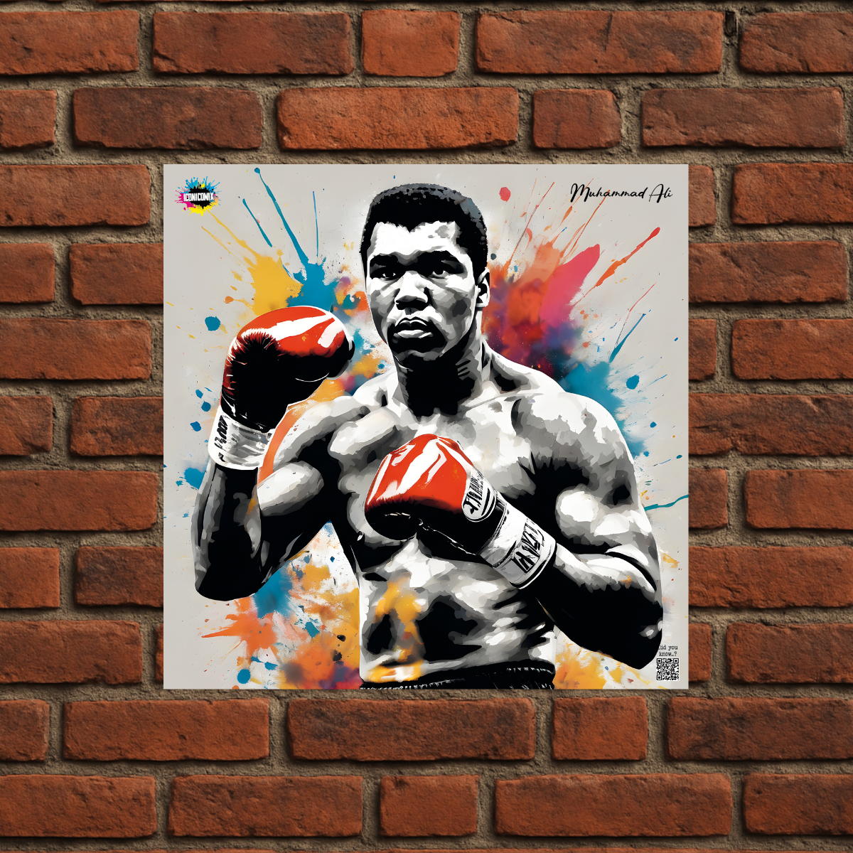 In ogni nostra grafica è presente anche un QR code che reindirizza al sito iconicomix.com, alla pagina ufficiale dell’icona che hai scelto. Una porta digitale che racconta la sua storia, le sue frasi e il suo mondo.