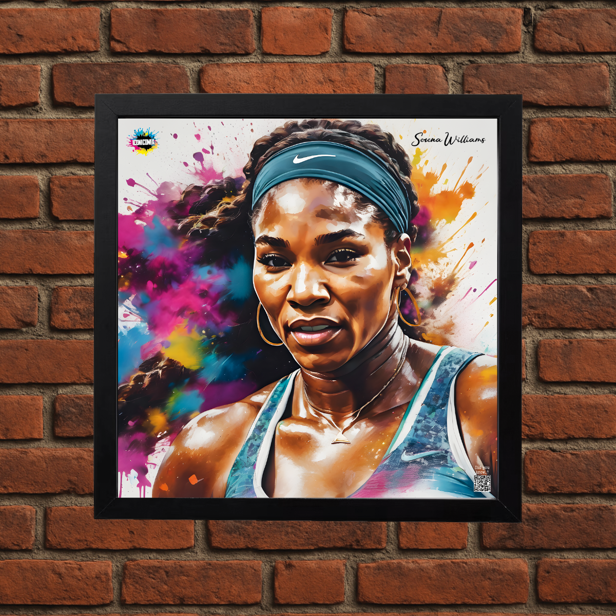Each of our graphics also features a QR code that redirects you to the iconicomix.com website, the official page of the icon you've chosen. A digital gateway that tells its story, its phrases, and its world.