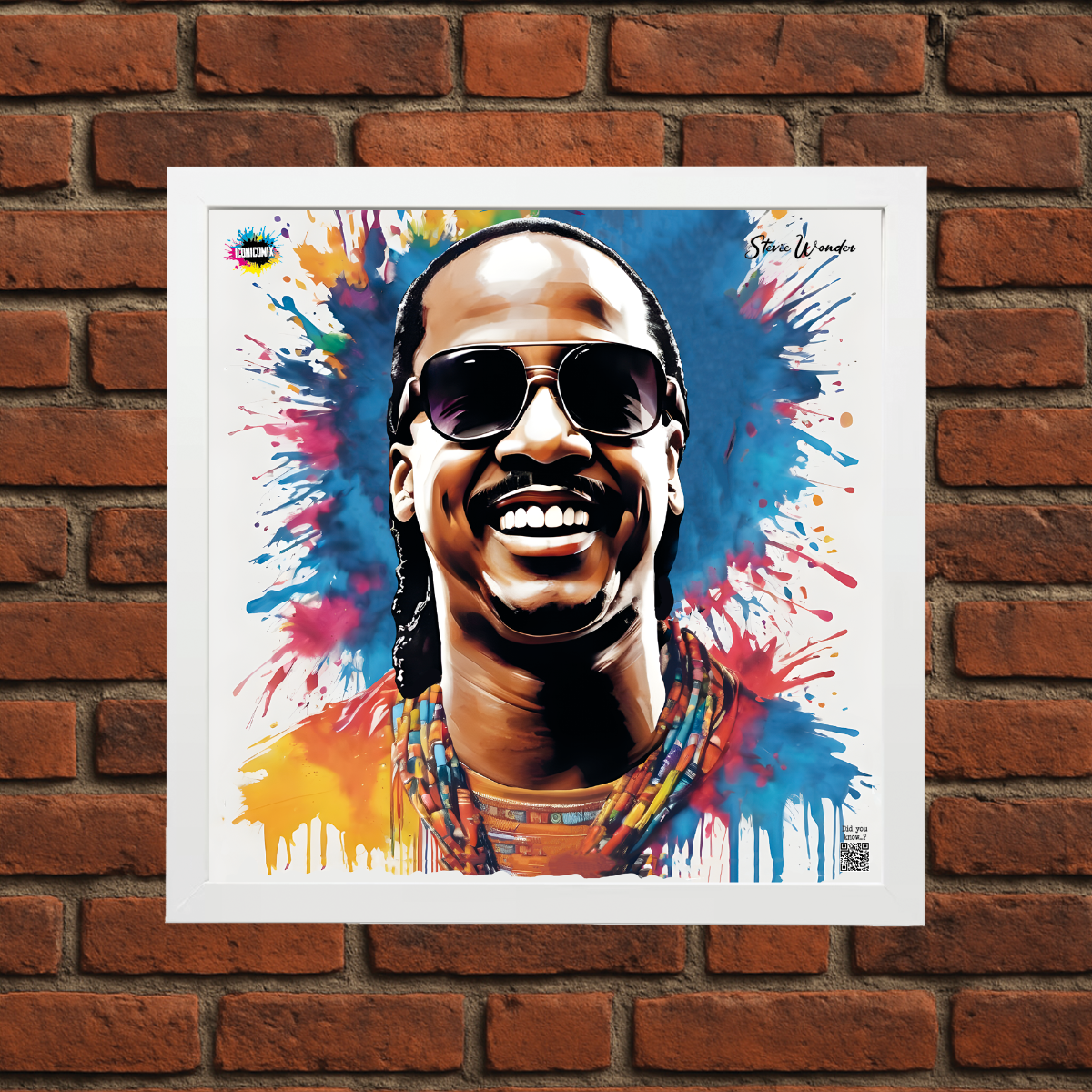 In ogni nostra grafica è presente anche un QR code che reindirizza al sito iconicomix.com, alla pagina ufficiale dell’icona che hai scelto. Una porta digitale che racconta la sua storia, le sue frasi e il suo mondo.