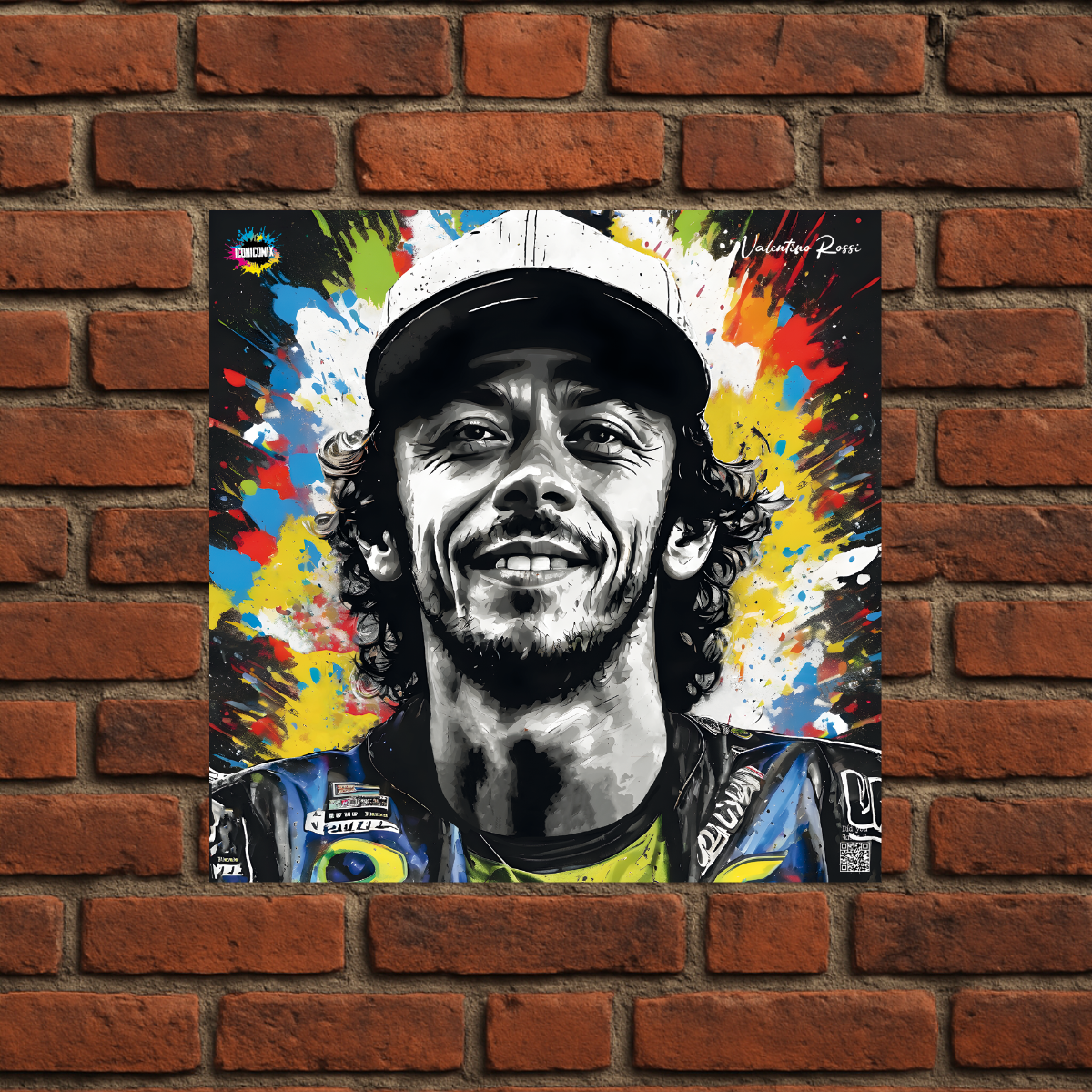 Chacun de nos visuels comporte également un code QR qui vous redirige vers le site web iconicomix.com, la page officielle de l'icône choisie. Une passerelle numérique qui vous dévoile son histoire, ses slogans et son univers.