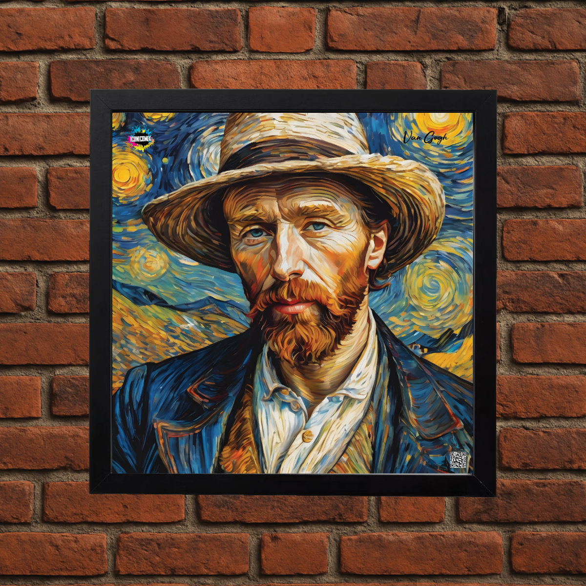 In ogni nostra grafica è presente anche un QR code che reindirizza al sito iconicomix.com, alla pagina ufficiale dell’icona che hai scelto. Una porta digitale che racconta la sua storia, le sue frasi e il suo mondo.