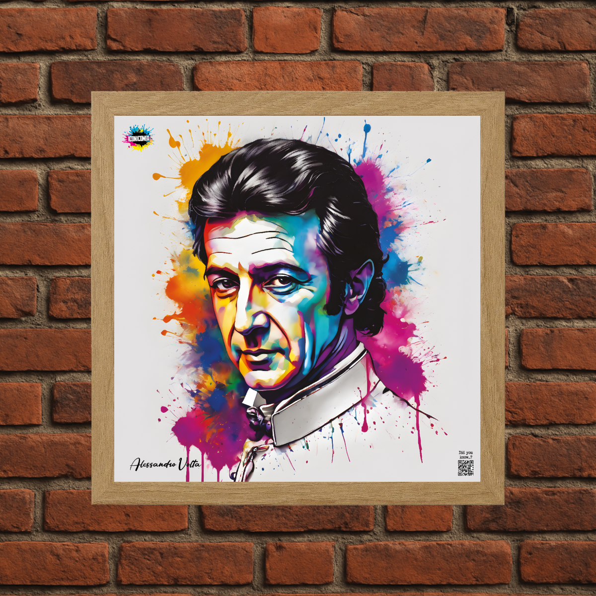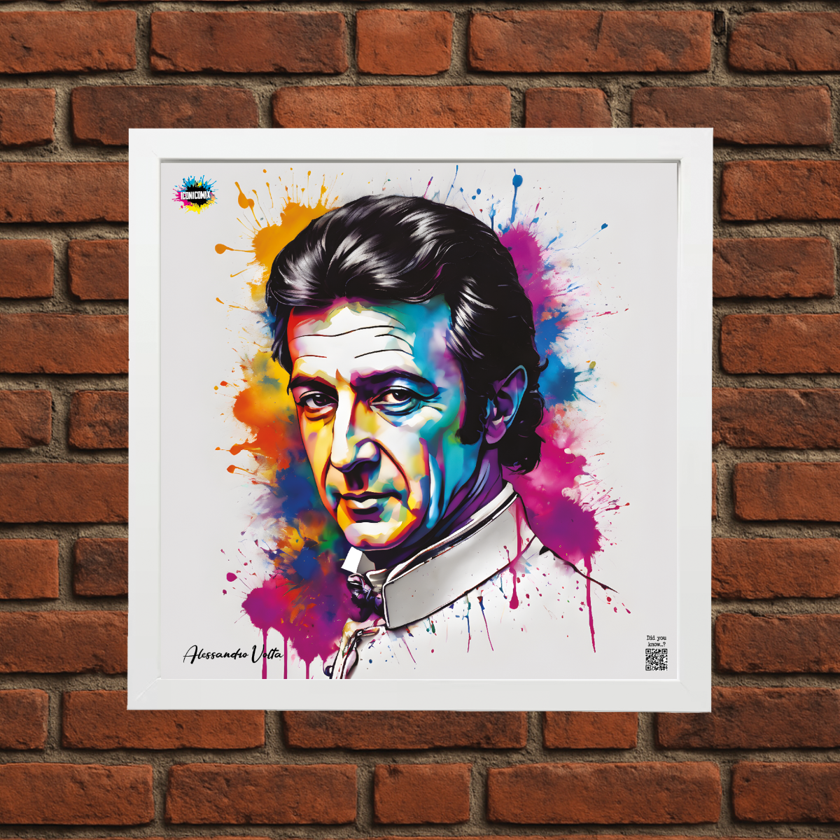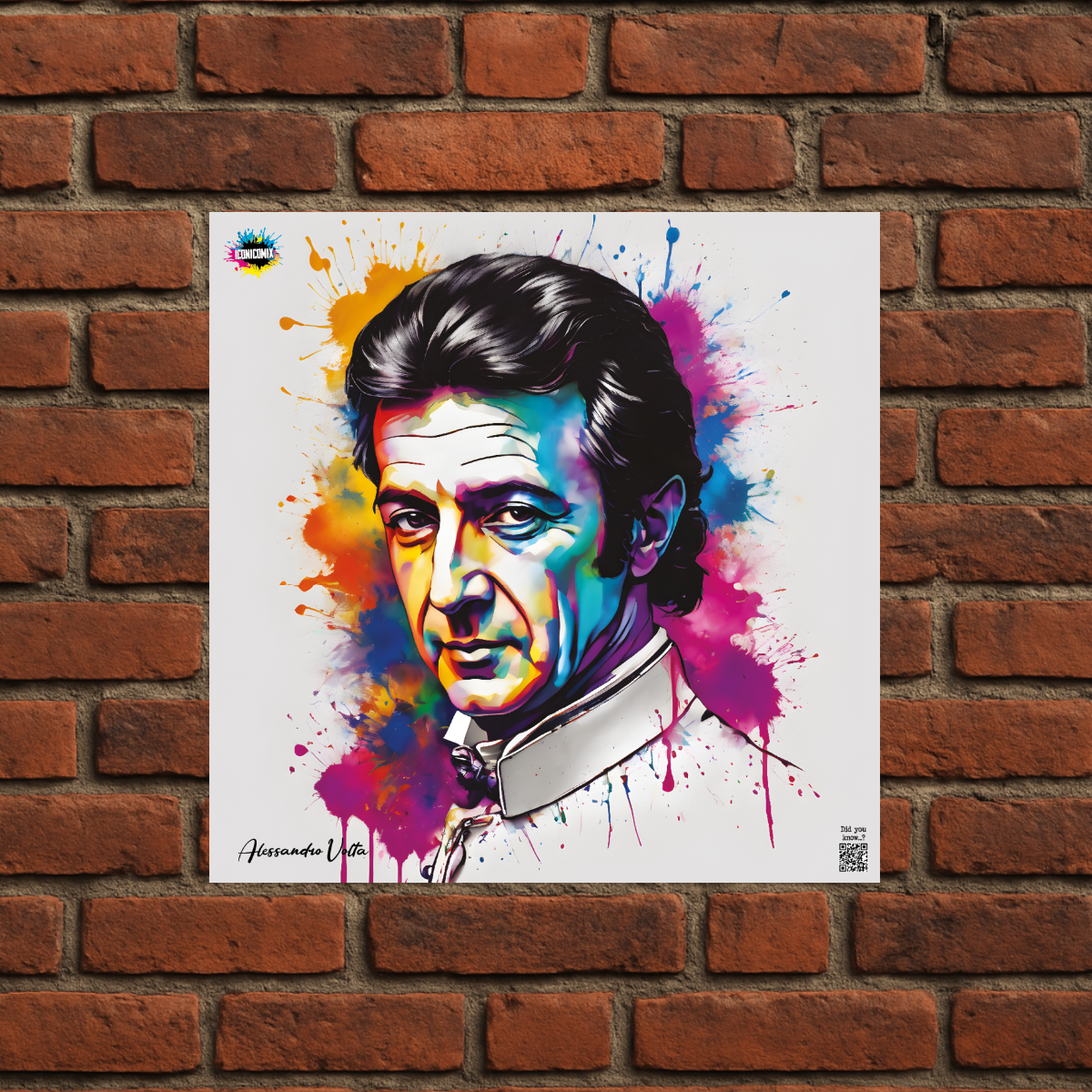 Cada uno de nuestros diseños incluye un código QR que te redirige a iconicomix.com, la página oficial del icono que has elegido. Un portal digital que narra su historia, sus frases y su universo.
