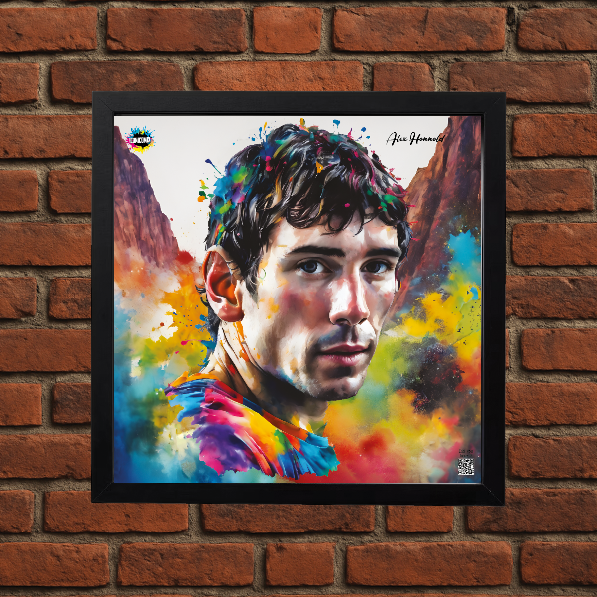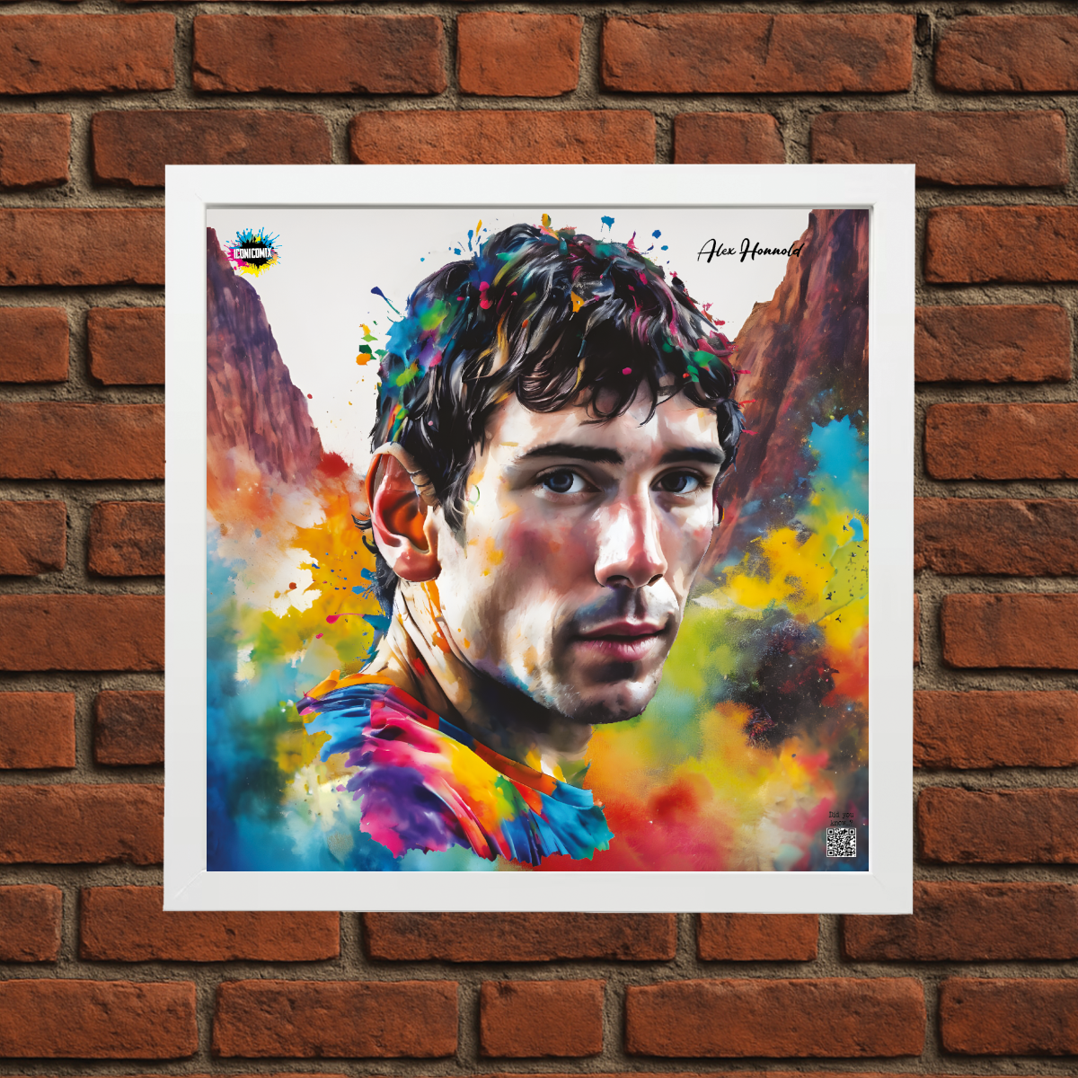 In ogni nostra grafica è presente anche un QR code che reindirizza al sito iconicomix.com, alla pagina ufficiale dell’icona che hai scelto. Una porta digitale che racconta la sua storia, le sue frasi e il suo mondo.