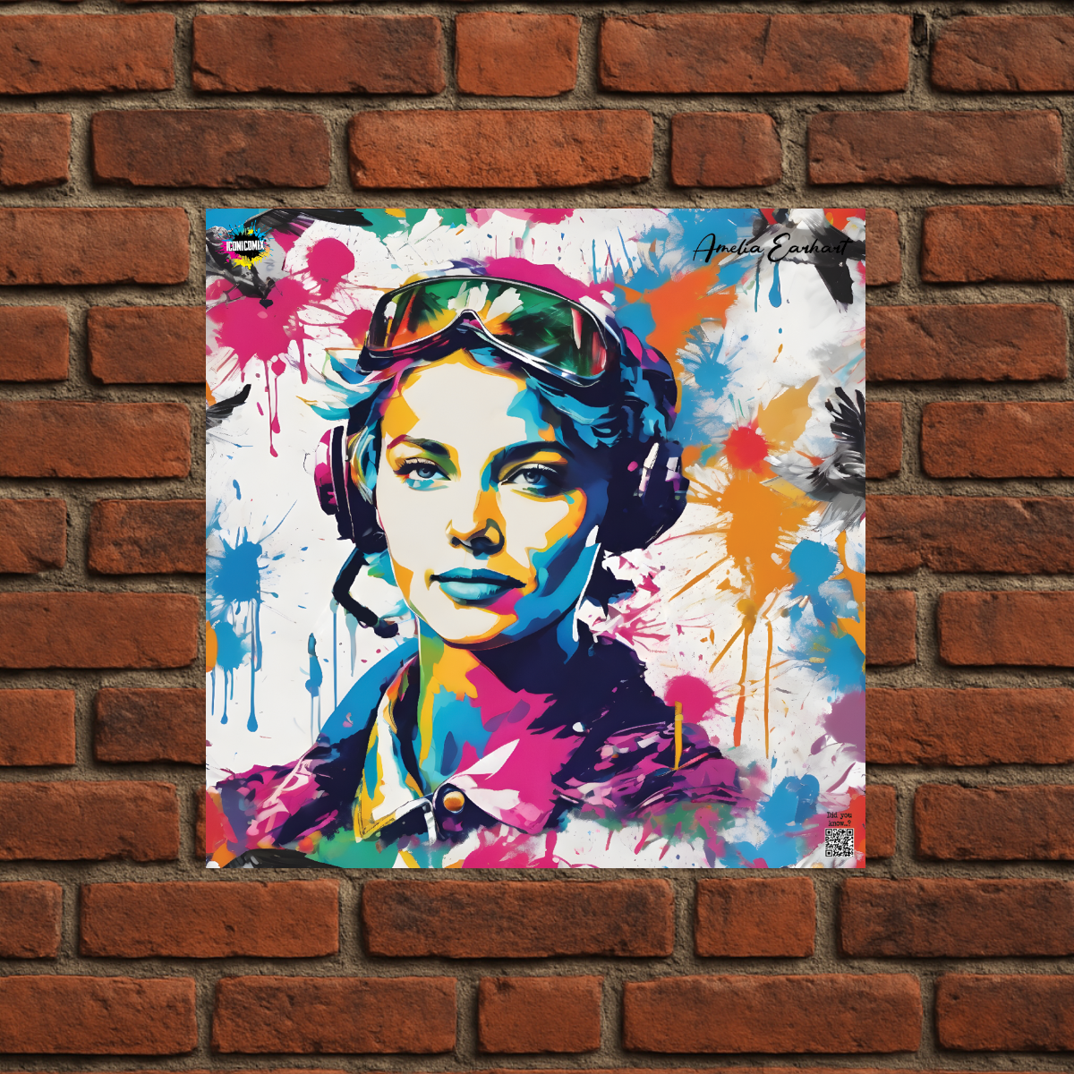 In ogni nostra grafica è presente anche un QR code che reindirizza al sito iconicomix.com, alla pagina ufficiale dell’icona che hai scelto. Una porta digitale che racconta la sua storia, le sue frasi e il suo mondo.