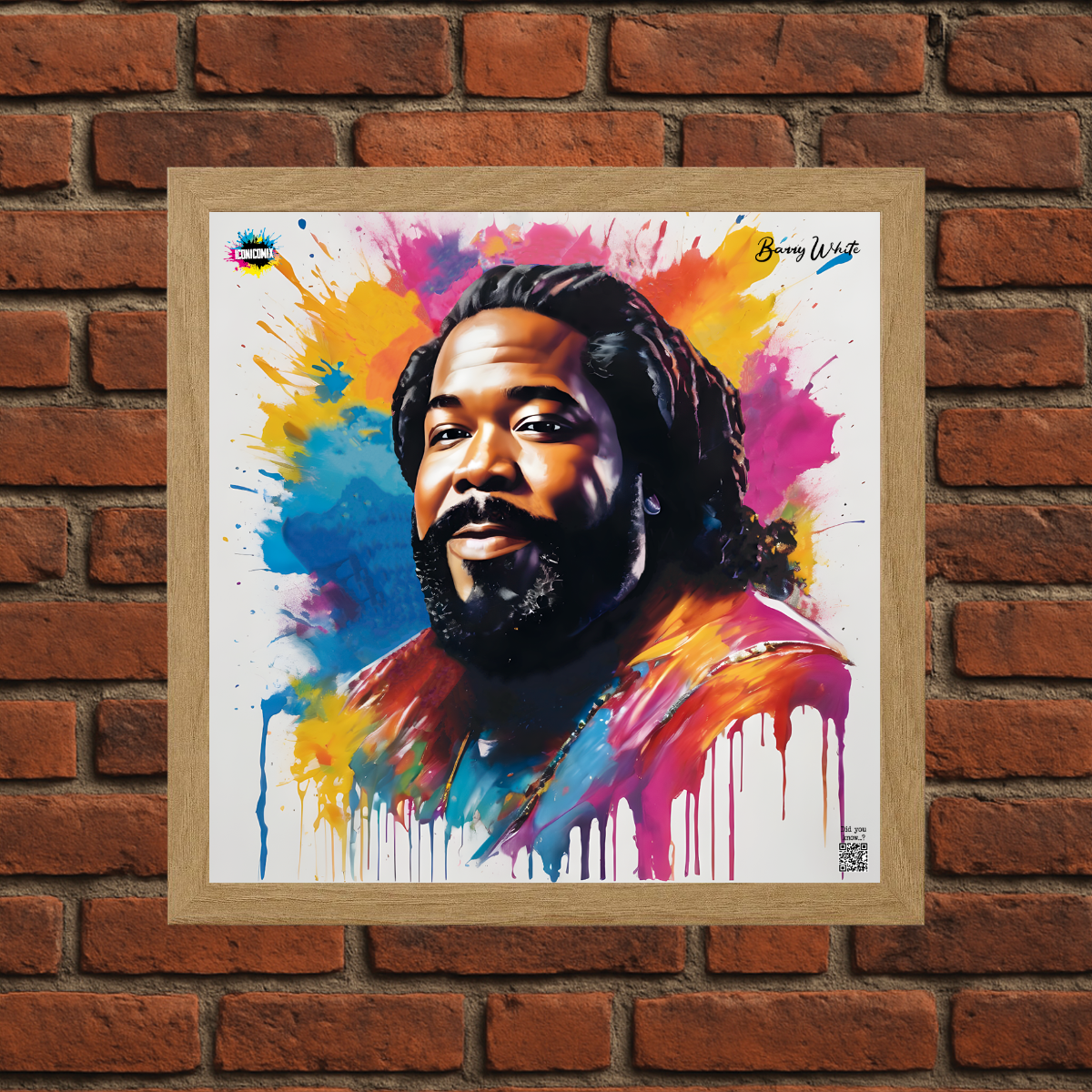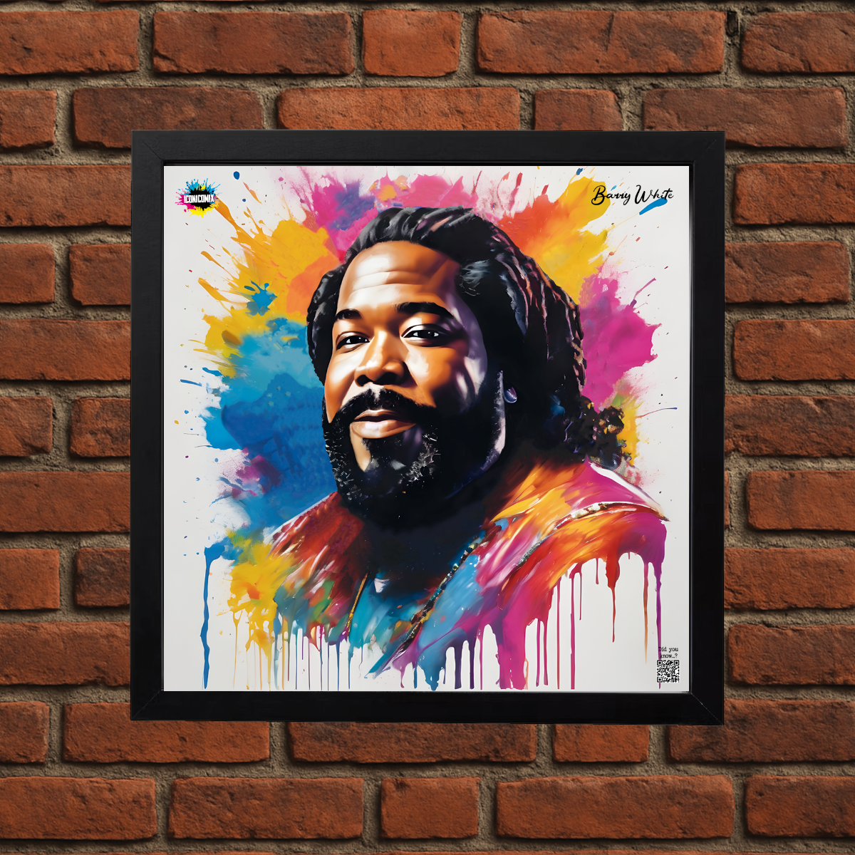In ogni nostra grafica è presente anche un QR code che reindirizza al sito iconicomix.com, alla pagina ufficiale dell’icona che hai scelto. Una porta digitale che racconta la sua storia, le sue frasi e il suo mondo.
