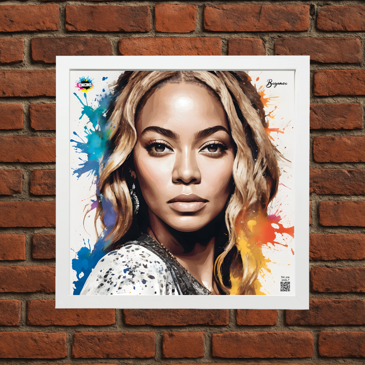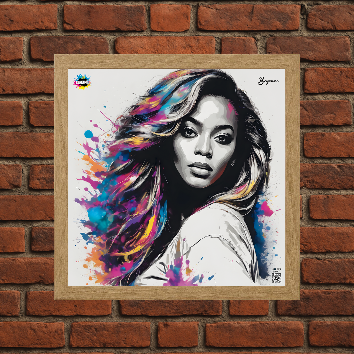 In ogni nostra grafica è presente anche un QR code che reindirizza al sito iconicomix.com, alla pagina ufficiale dell’icona che hai scelto. Una porta digitale che racconta la sua storia, le sue frasi e il suo mondo.