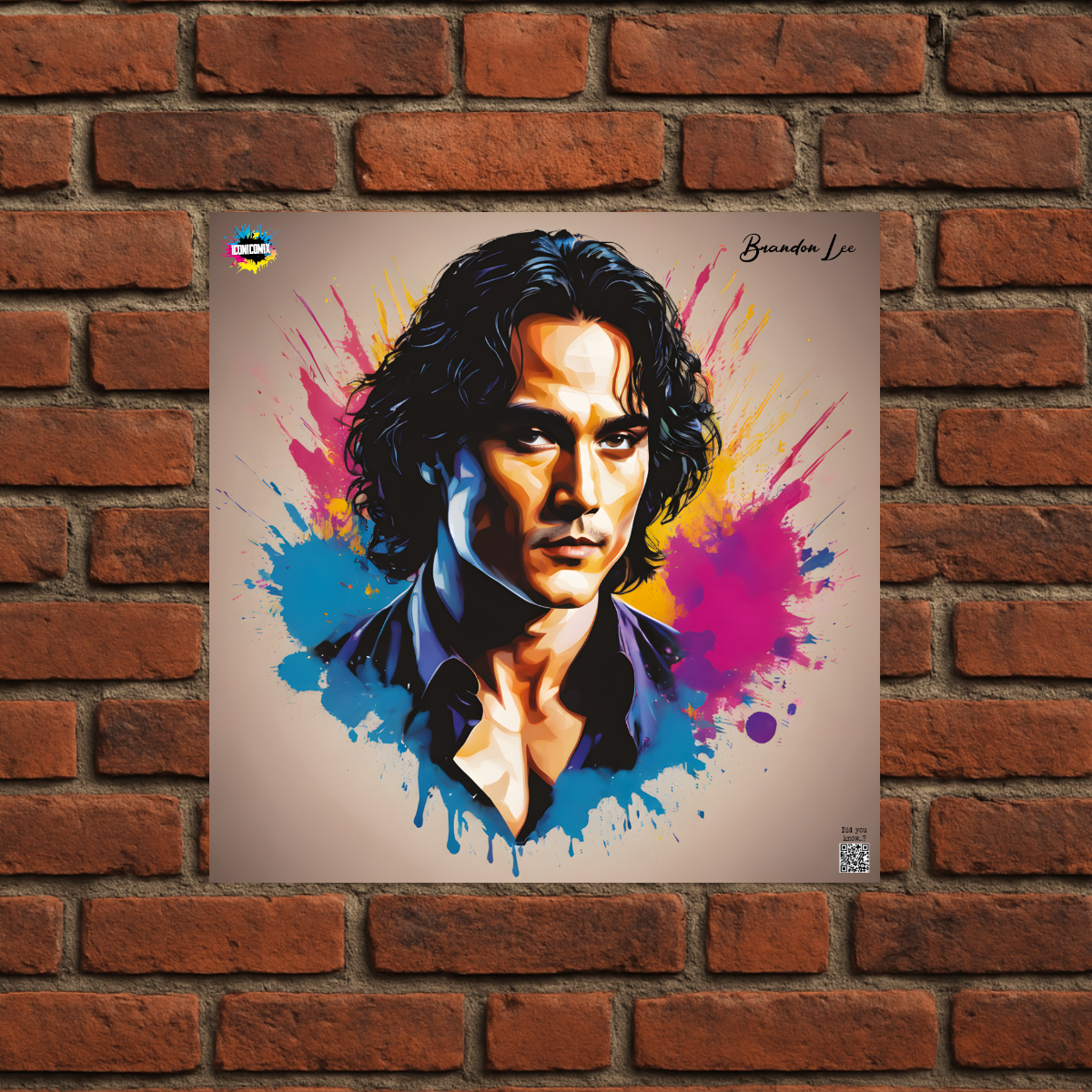 In ogni nostra grafica è presente anche un QR code che reindirizza al sito iconicomix.com, alla pagina ufficiale dell’icona che hai scelto. Una porta digitale che racconta la sua storia, le sue frasi e il suo mondo.