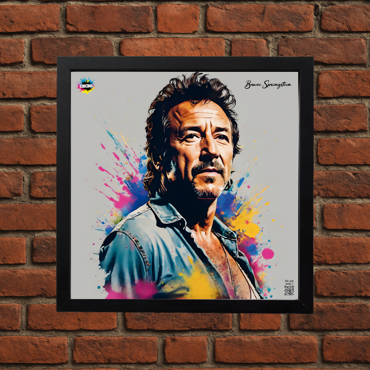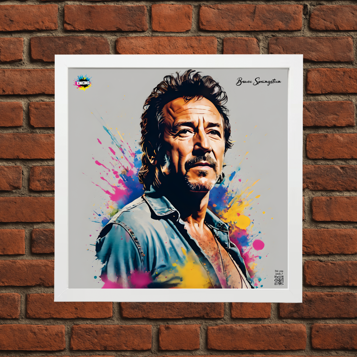 In ogni nostra grafica è presente anche un QR code che reindirizza al sito iconicomix.com, alla pagina ufficiale dell’icona che hai scelto. Una porta digitale che racconta la sua storia, le sue frasi e il suo mondo.