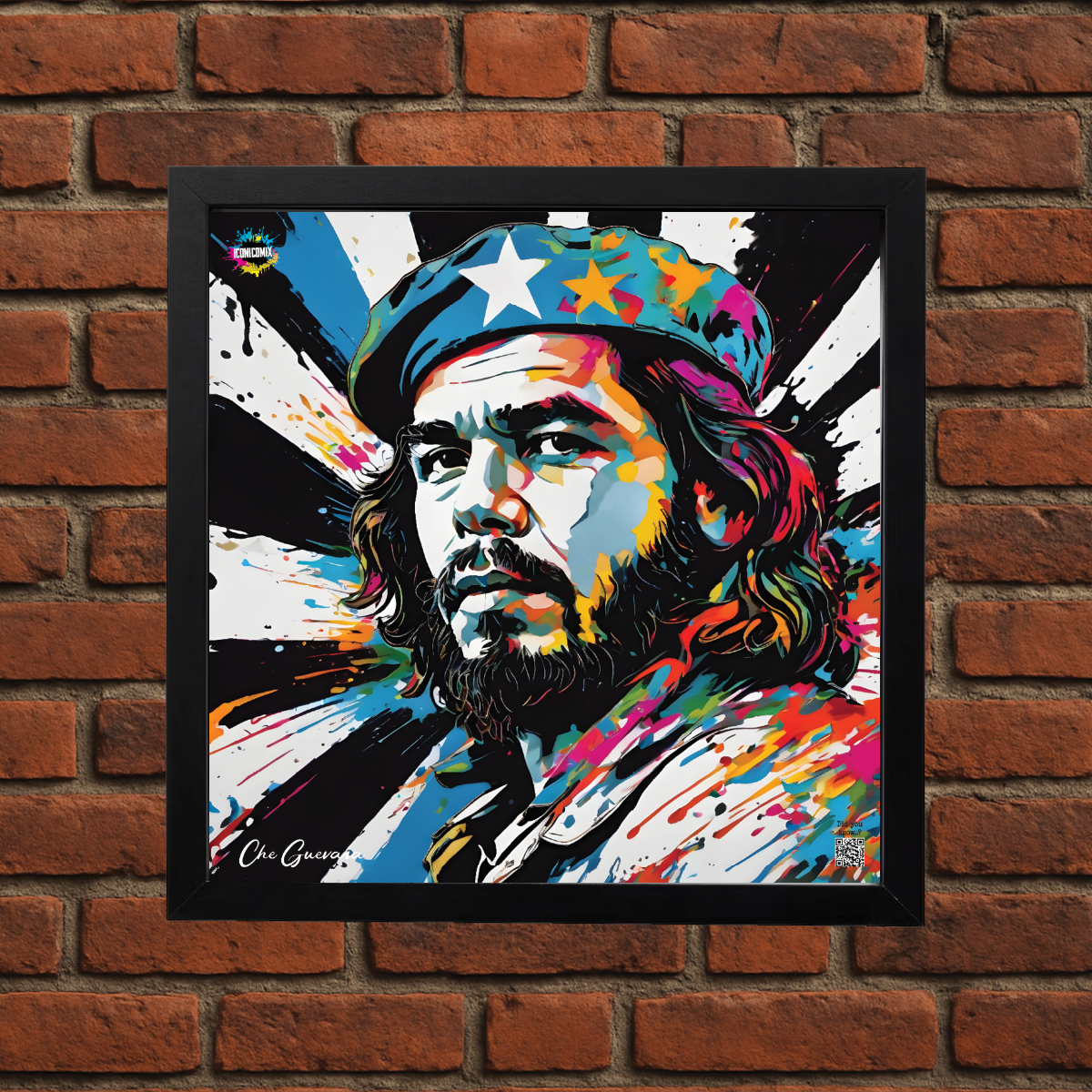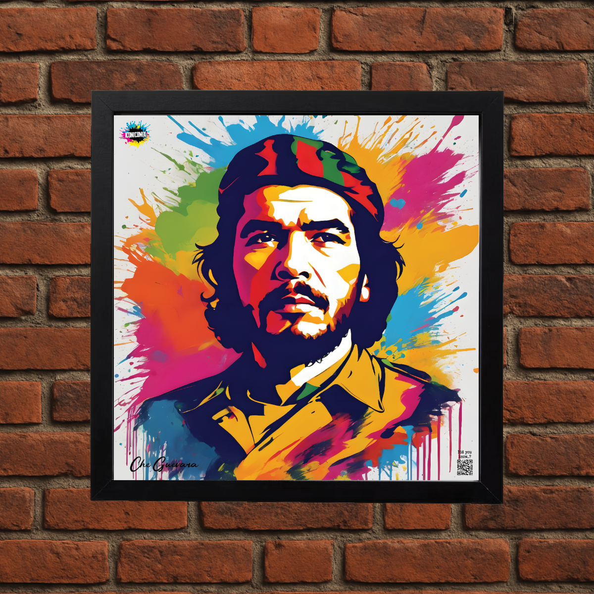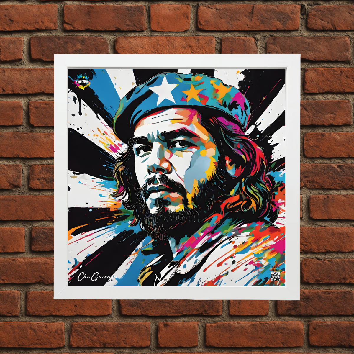 In ogni nostra grafica è presente anche un QR code che reindirizza al sito iconicomix.com, alla pagina ufficiale dell’icona che hai scelto. Una porta digitale che racconta la sua storia, le sue frasi e il suo mondo.