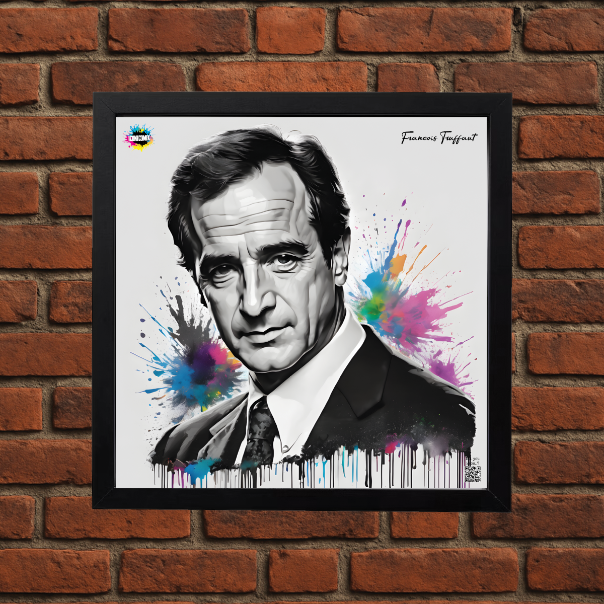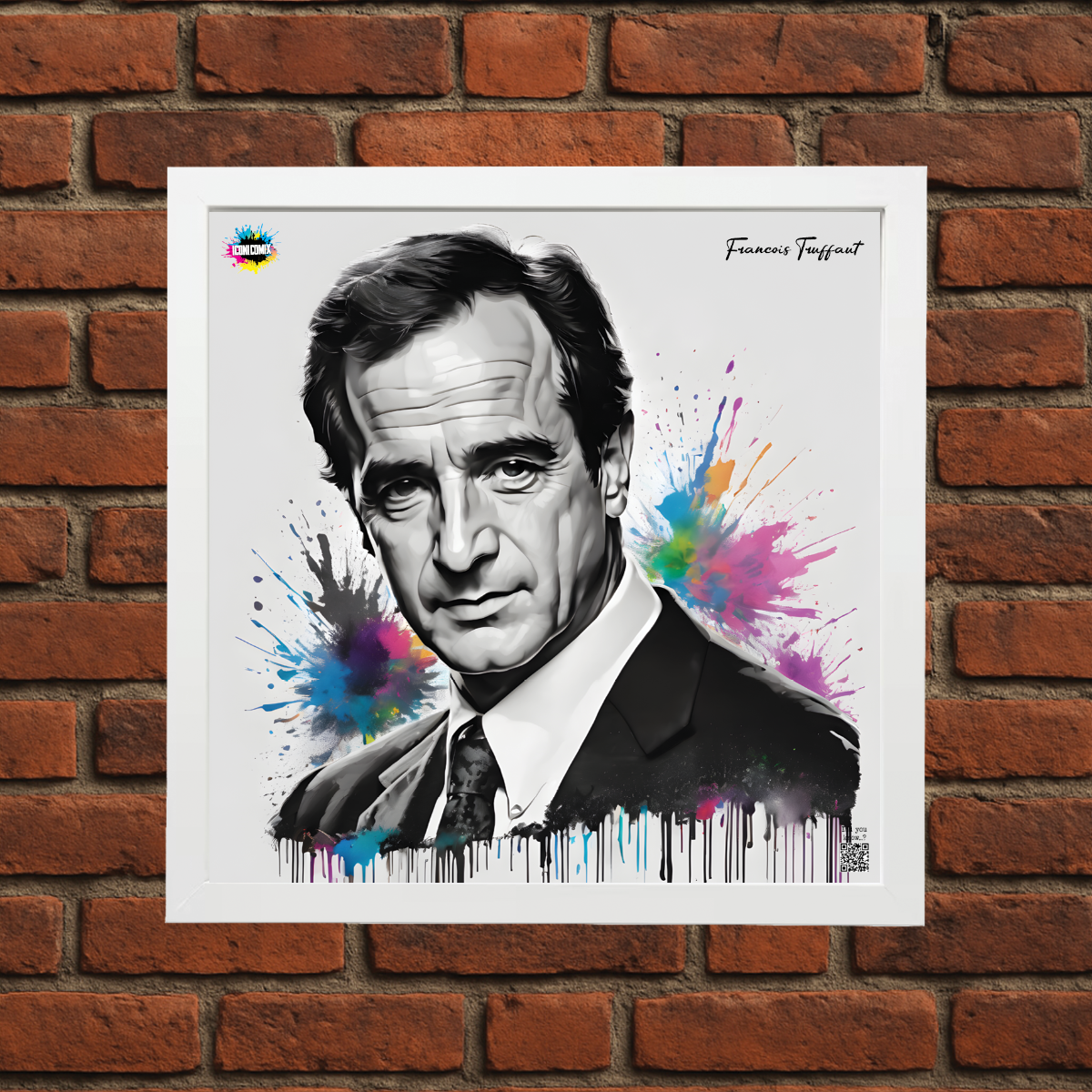 In ogni nostra grafica è presente anche un QR code che reindirizza al sito iconicomix.com, alla pagina ufficiale dell’icona che hai scelto. Una porta digitale che racconta la sua storia, le sue frasi e il suo mondo.