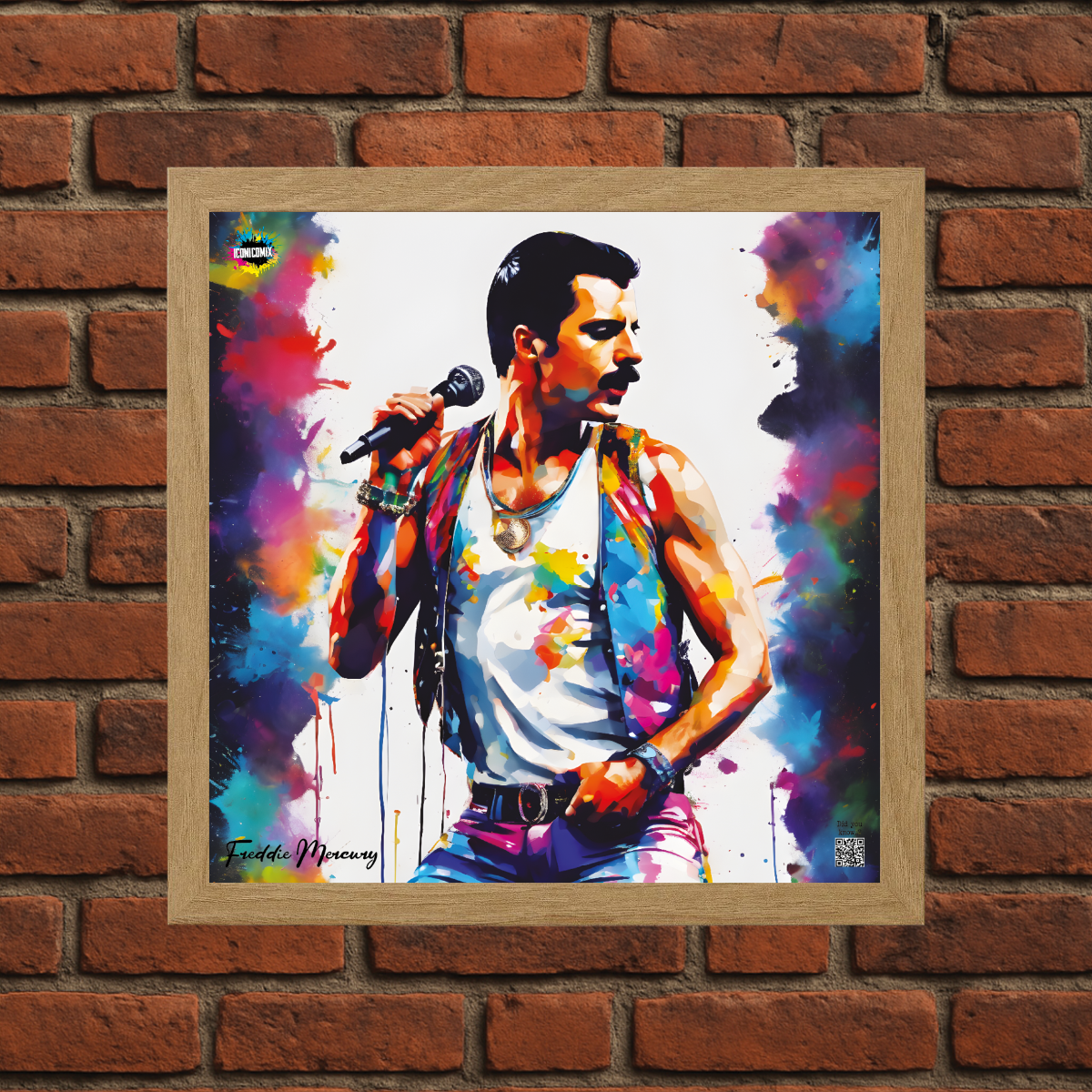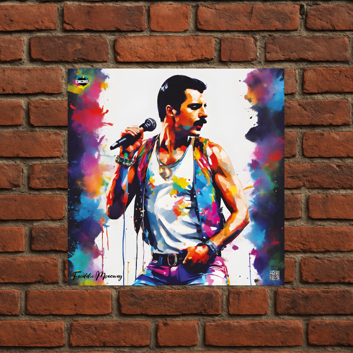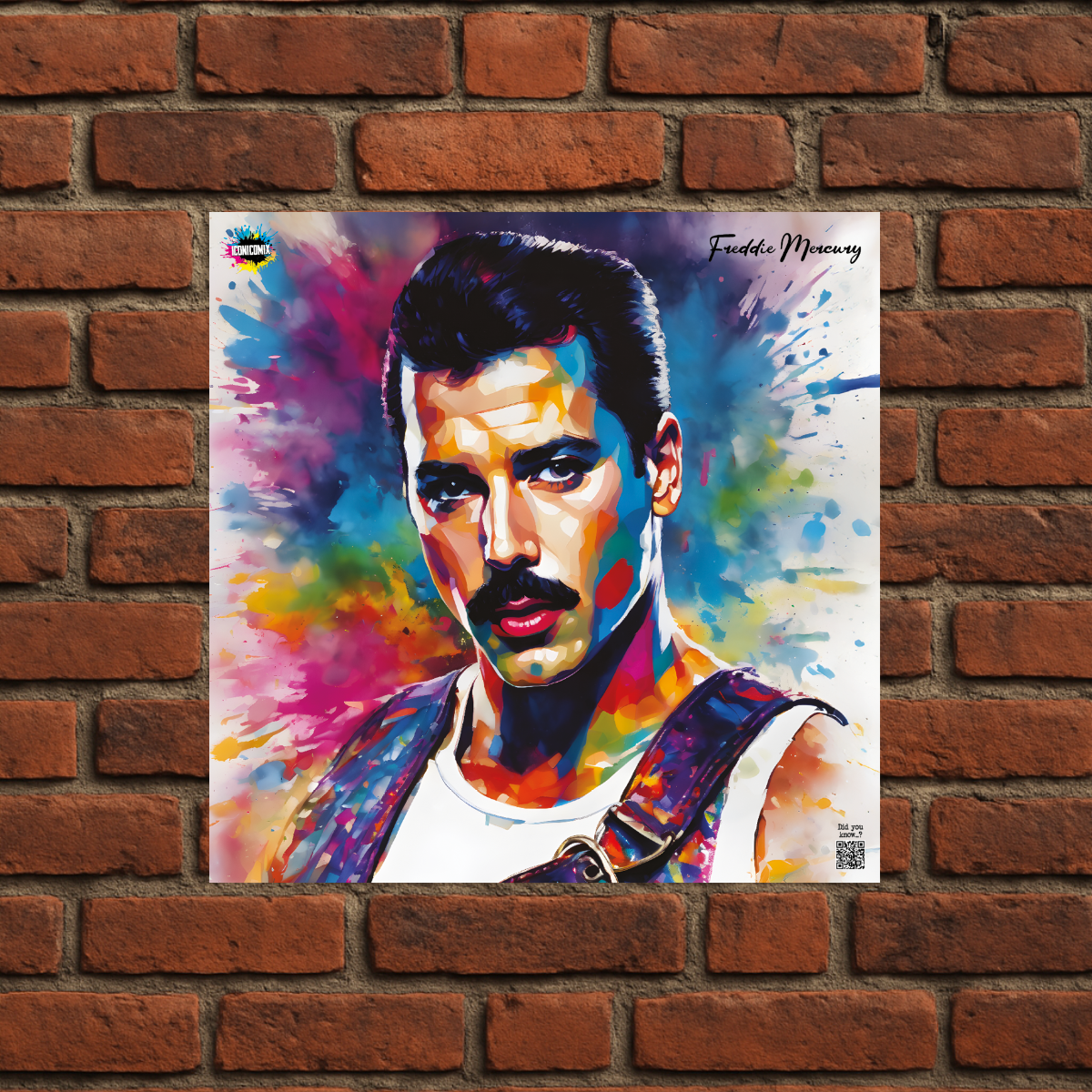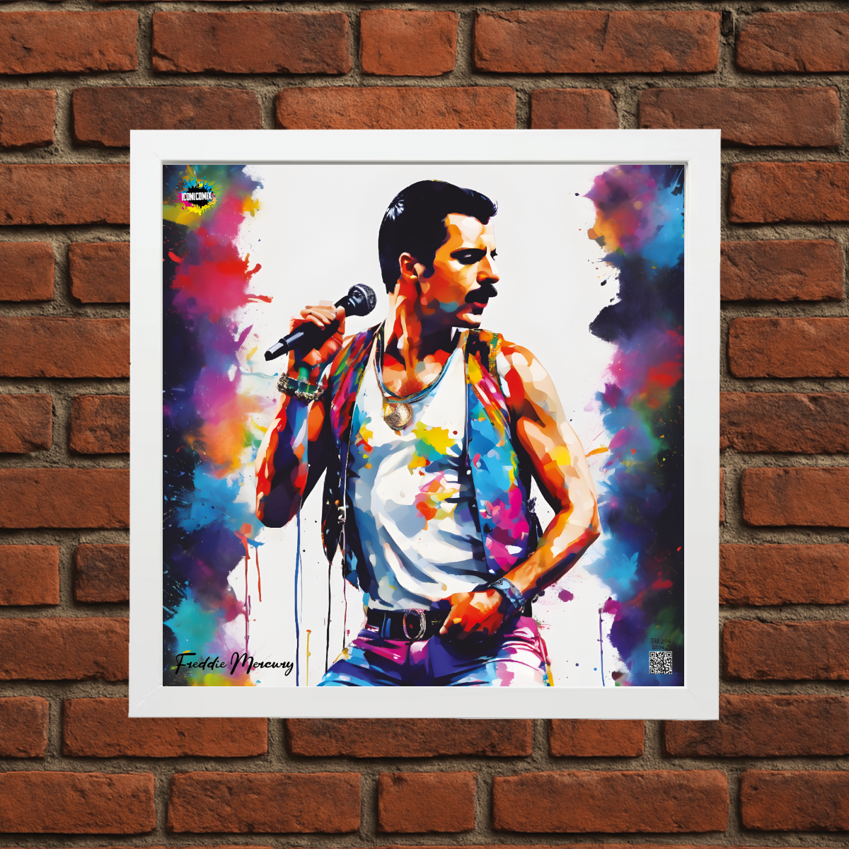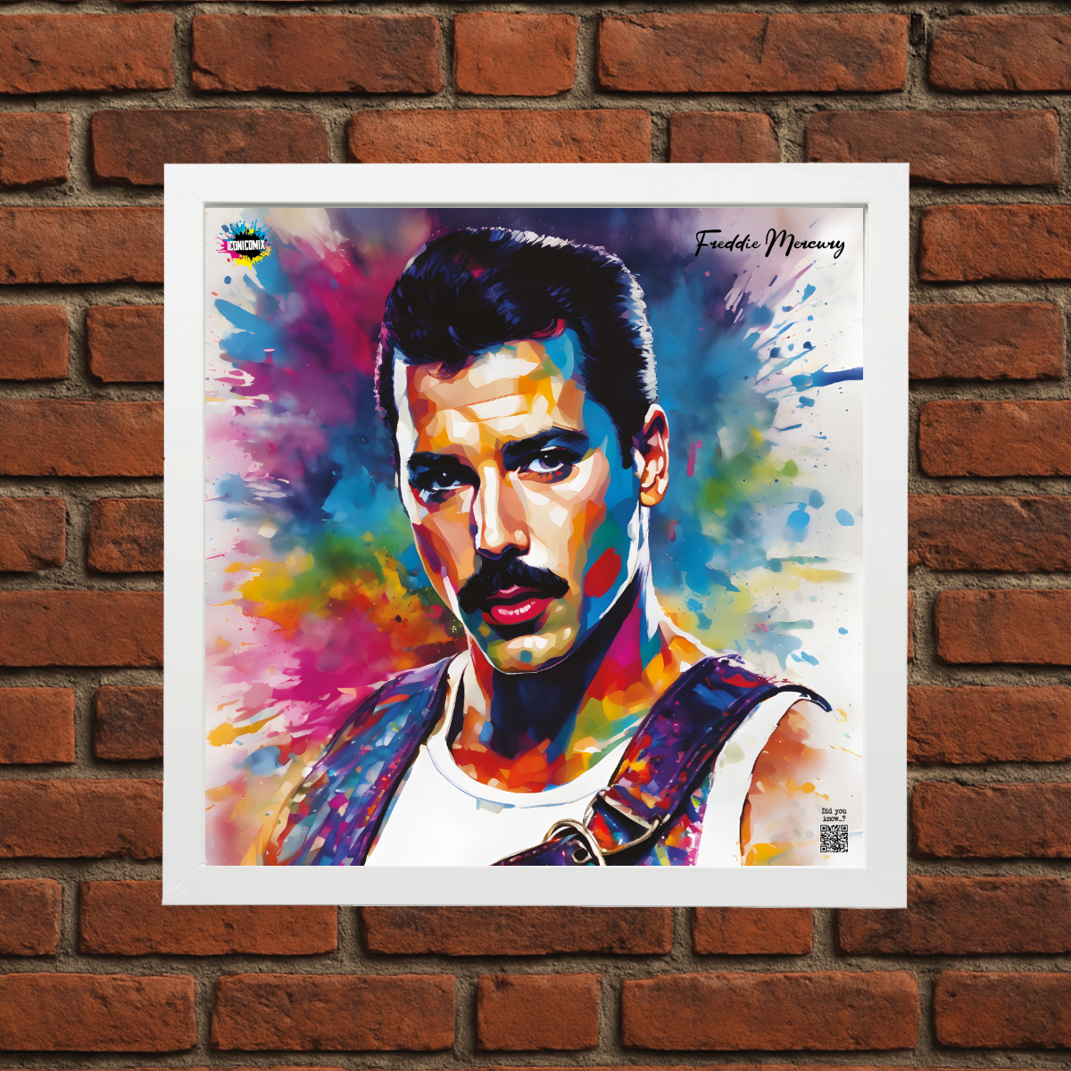 In ogni nostra grafica è presente anche un QR code che reindirizza al sito iconicomix.com, alla pagina ufficiale dell’icona che hai scelto. Una porta digitale che racconta la sua storia, le sue frasi e il suo mondo.
