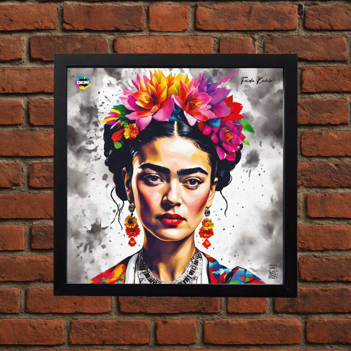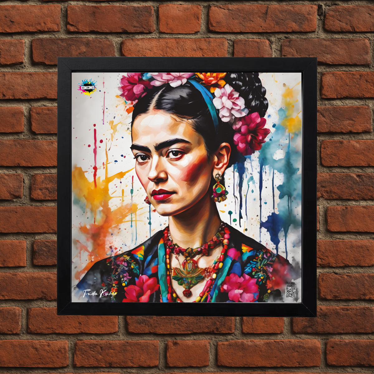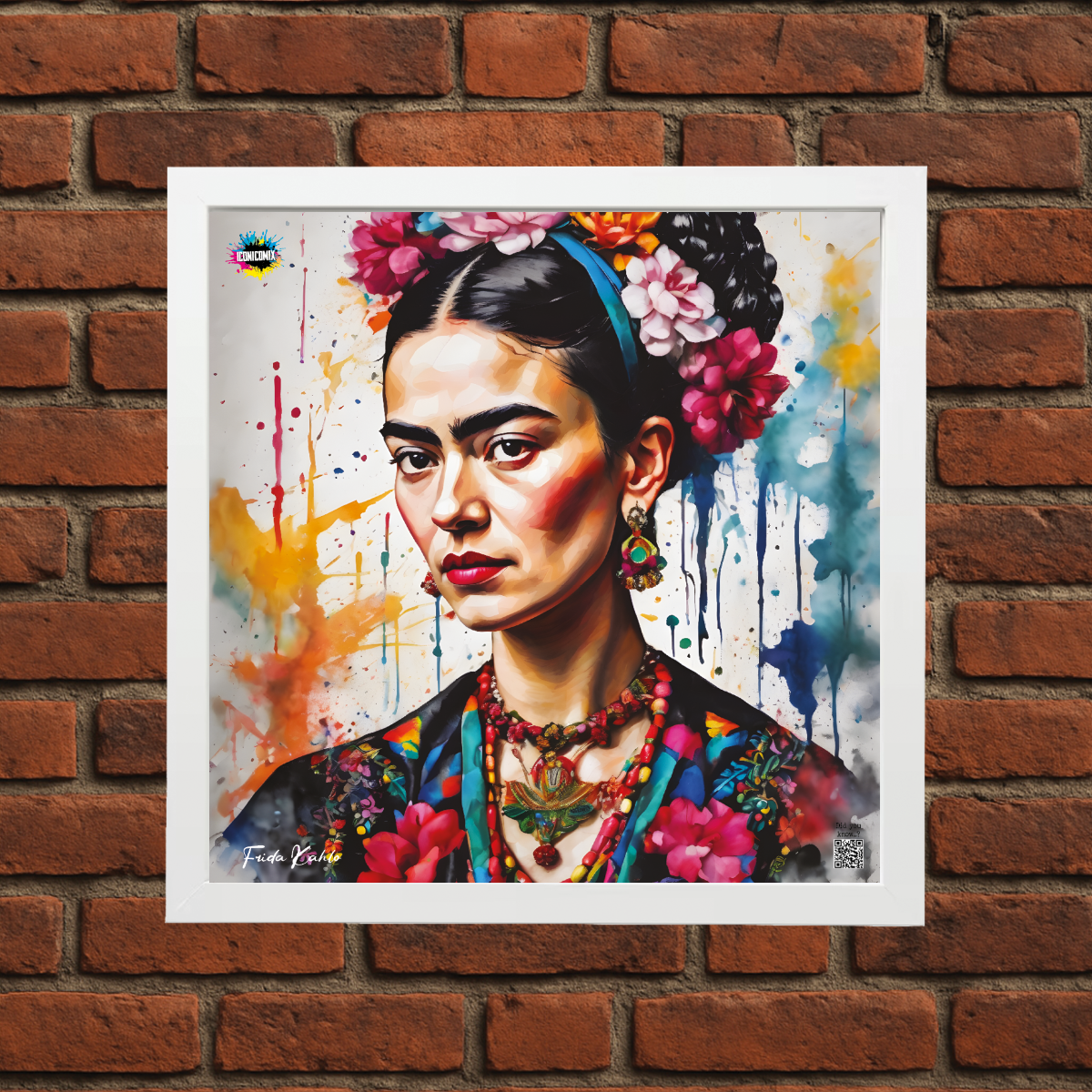 In ogni nostra grafica è presente anche un QR code che reindirizza al sito iconicomix.com, alla pagina ufficiale dell’icona che hai scelto. Una porta digitale che racconta la sua storia, le sue frasi e il suo mondo.