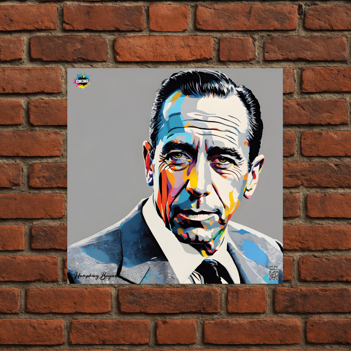 Each of our graphics also features a QR code that redirects you to the iconicomix.com website, the official page of the icon you've chosen. A digital gateway that tells its story, its phrases, and its world.