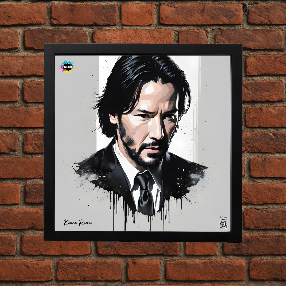 In ogni nostra grafica è presente anche un QR code che reindirizza al sito iconicomix.com, alla pagina ufficiale dell’icona che hai scelto. Una porta digitale che racconta la sua storia, le sue frasi e il suo mondo.