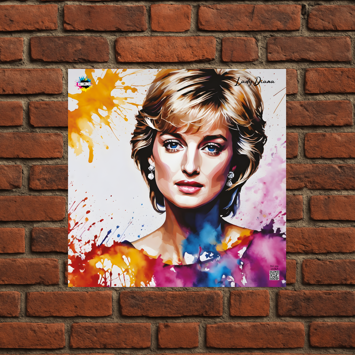 In ogni nostra grafica è presente anche un QR code che reindirizza al sito iconicomix.com, alla pagina ufficiale dell’icona che hai scelto. Una porta digitale che racconta la sua storia, le sue frasi e il suo mondo.