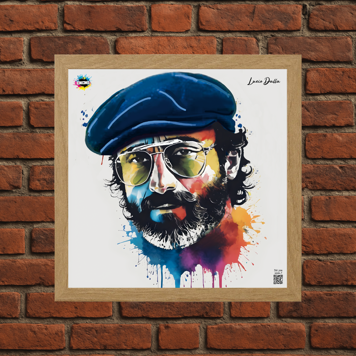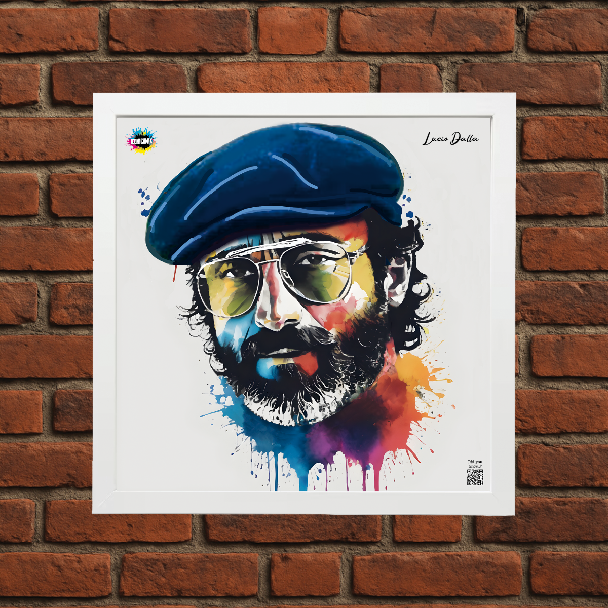 In ogni nostra grafica è presente anche un QR code che reindirizza al sito iconicomix.com, alla pagina ufficiale dell’icona che hai scelto. Una porta digitale che racconta la sua storia, le sue frasi e il suo mondo.
