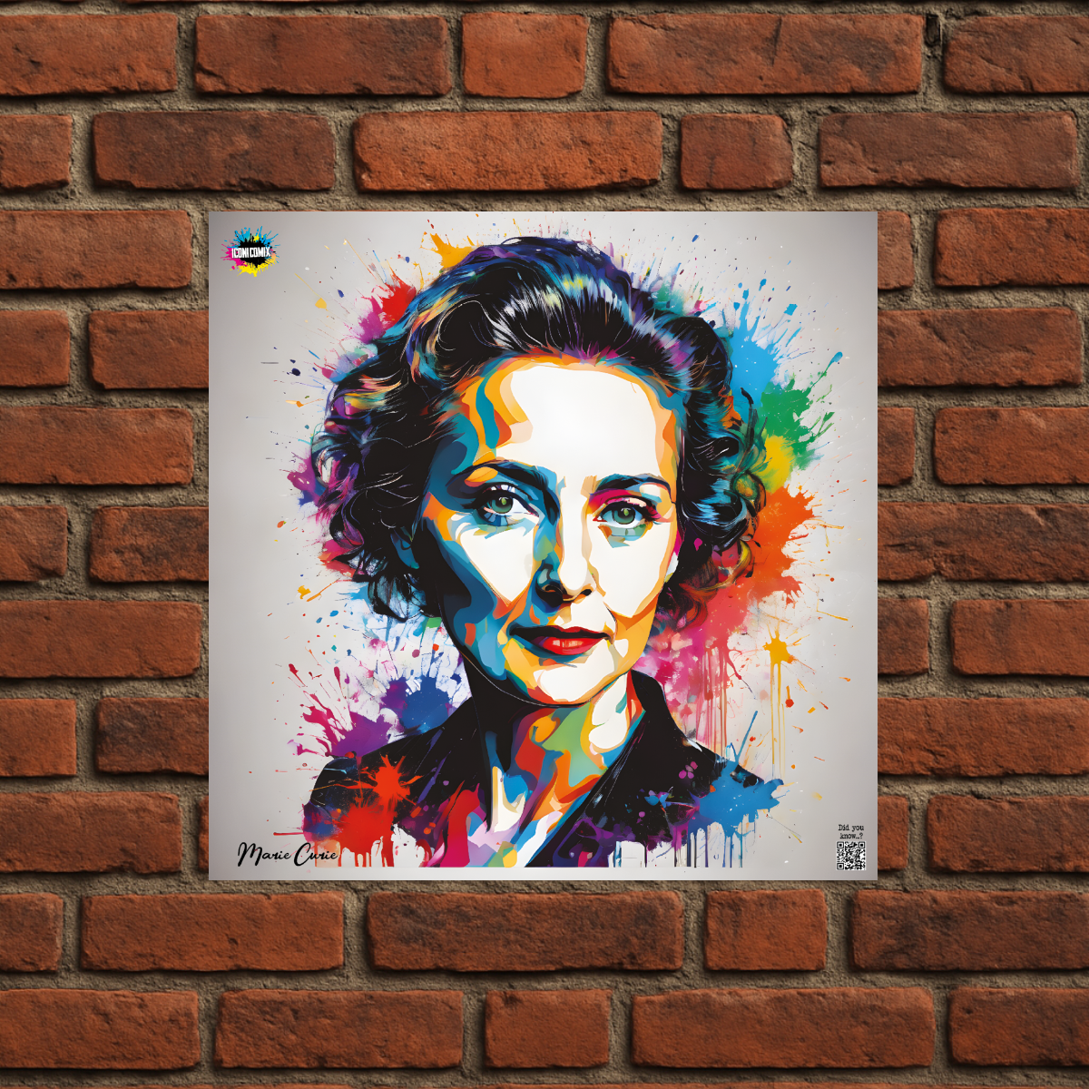 Cada uno de nuestros diseños incluye un código QR que te redirige a iconicomix.com, la página oficial del icono que has elegido. Un portal digital que narra su historia, sus frases y su universo.