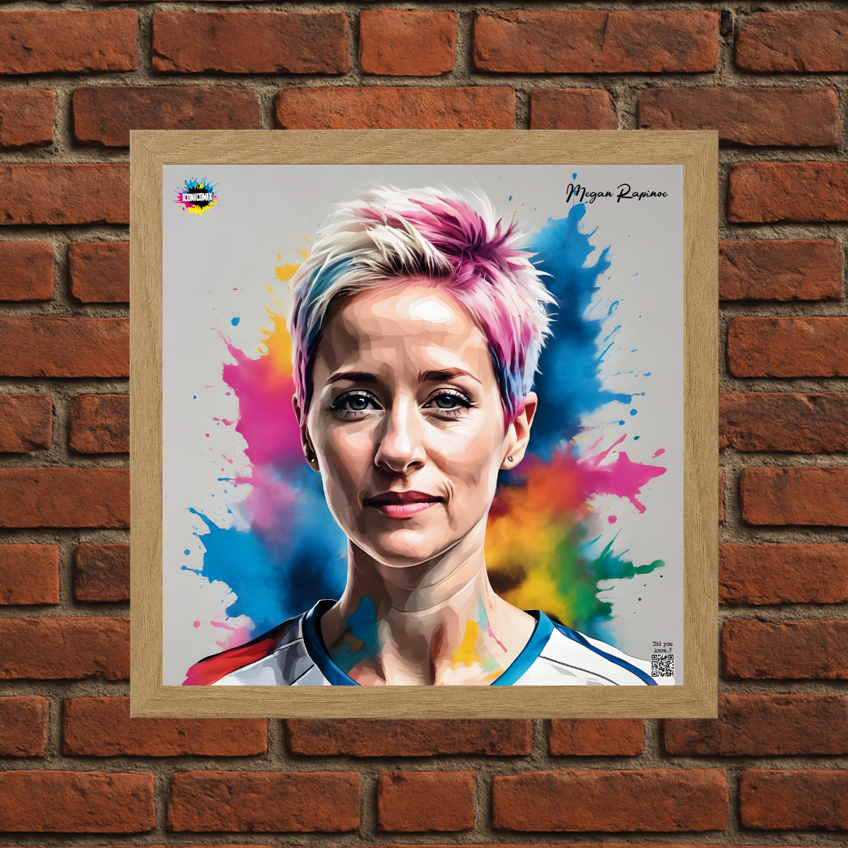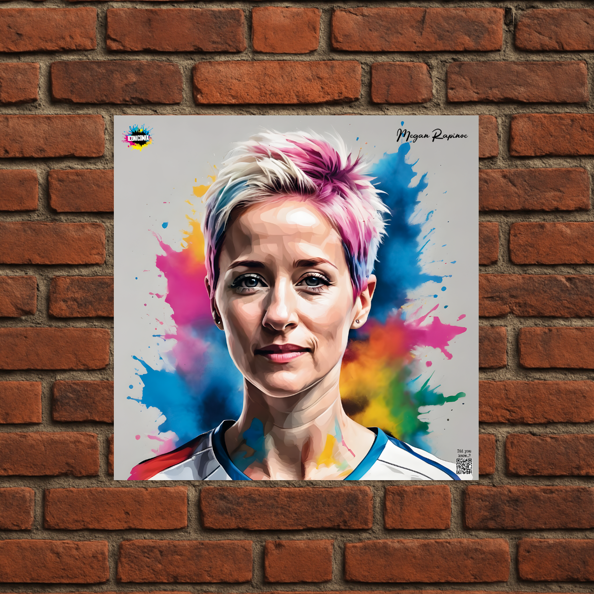 Each of our graphics also features a QR code that redirects you to the iconicomix.com website, the official page of the icon you've chosen. A digital gateway that tells its story, its phrases, and its world.