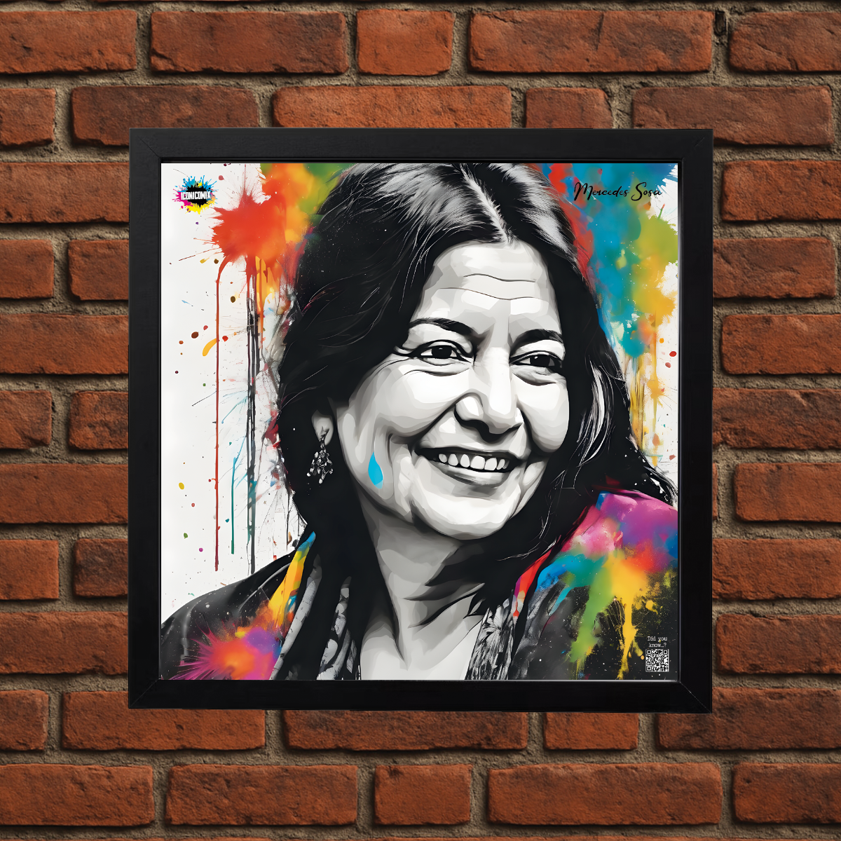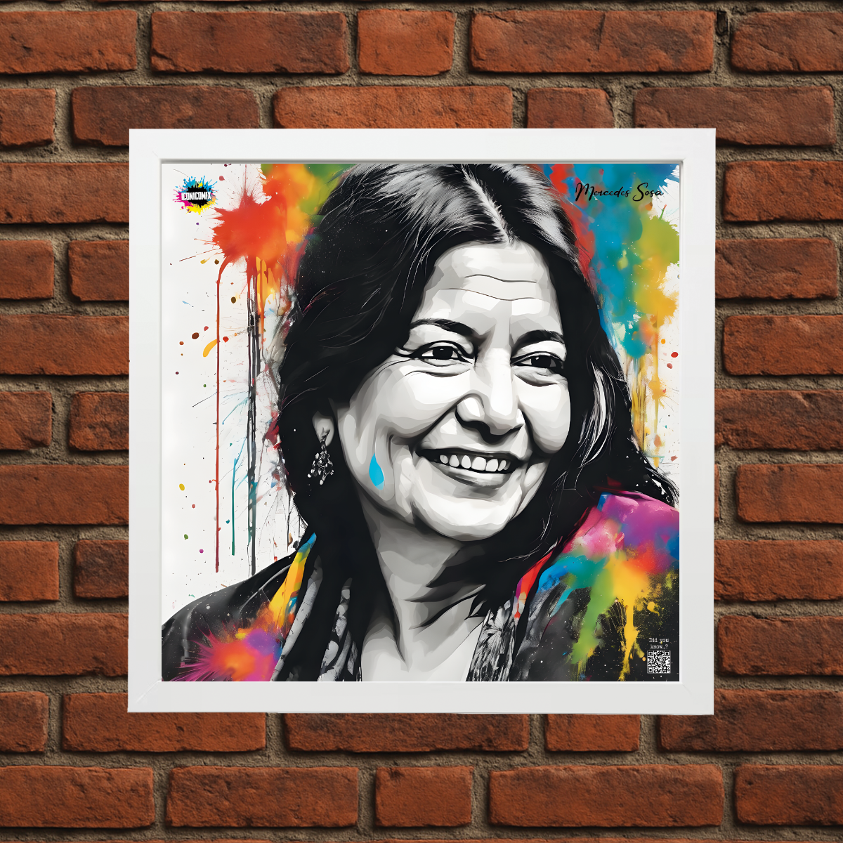 Chacun de nos visuels comporte également un code QR qui vous redirige vers le site web iconicomix.com, la page officielle de l'icône choisie. Une passerelle numérique qui vous dévoile son histoire, ses slogans et son univers.