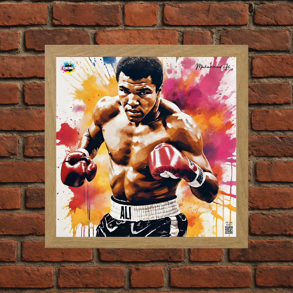 In ogni nostra grafica è presente anche un QR code che reindirizza al sito iconicomix.com, alla pagina ufficiale dell’icona che hai scelto. Una porta digitale che racconta la sua storia, le sue frasi e il suo mondo.