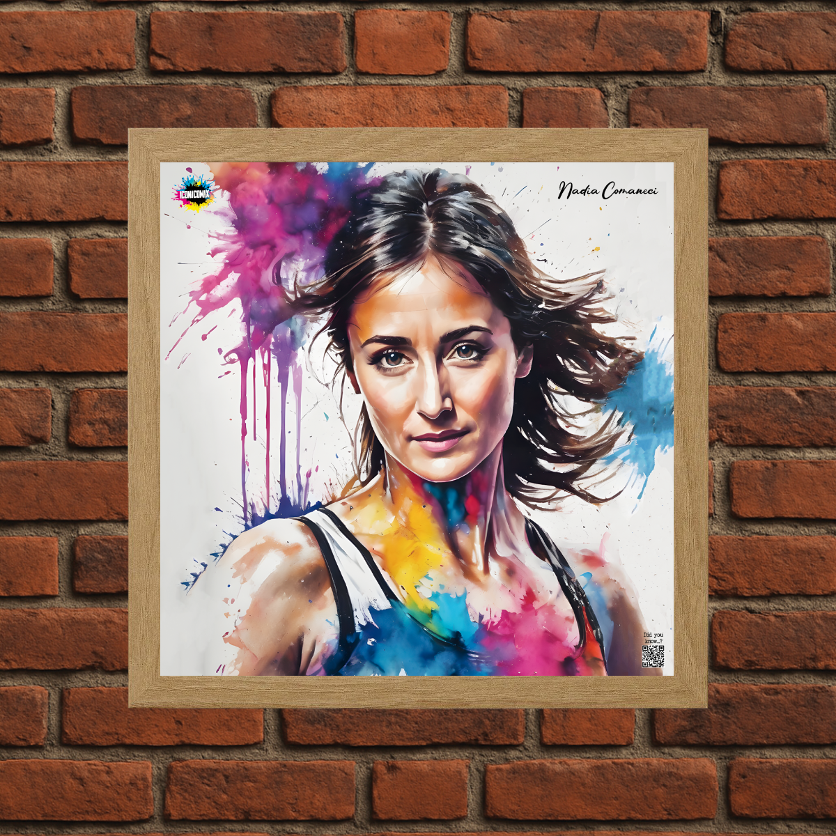 In ogni nostra grafica è presente anche un QR code che reindirizza al sito iconicomix.com, alla pagina ufficiale dell’icona che hai scelto. Una porta digitale che racconta la sua storia, le sue frasi e il suo mondo.