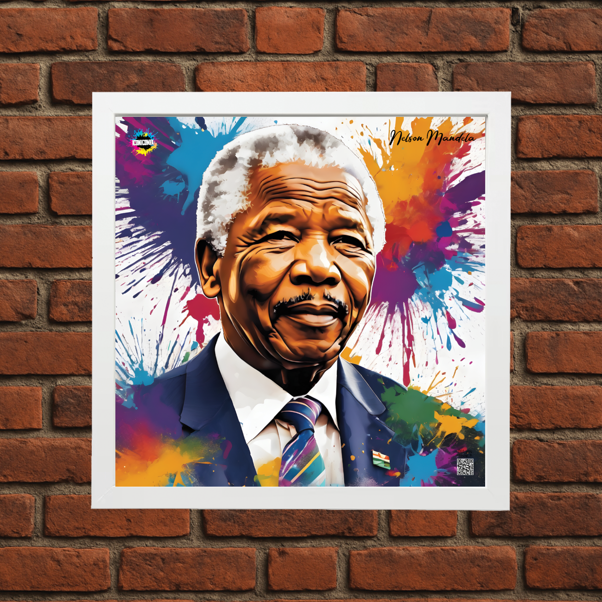 In ogni nostra grafica è presente anche un QR code che reindirizza al sito iconicomix.com, alla pagina ufficiale dell’icona che hai scelto. Una porta digitale che racconta la sua storia, le sue frasi e il suo mondo.
