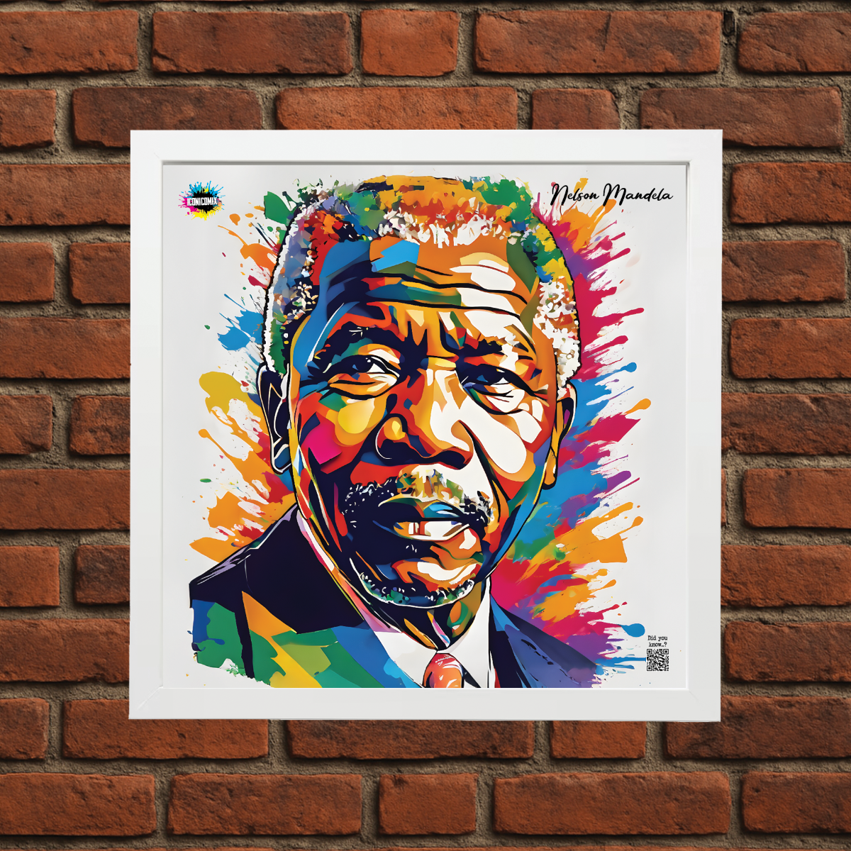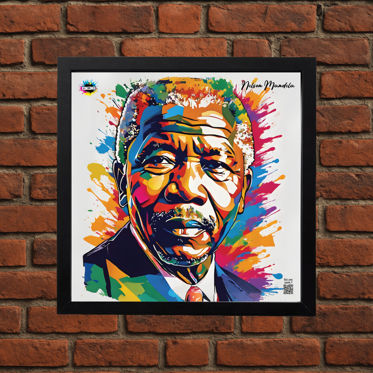 In ogni nostra grafica è presente anche un QR code che reindirizza al sito iconicomix.com, alla pagina ufficiale dell’icona che hai scelto. Una porta digitale che racconta la sua storia, le sue frasi e il suo mondo.