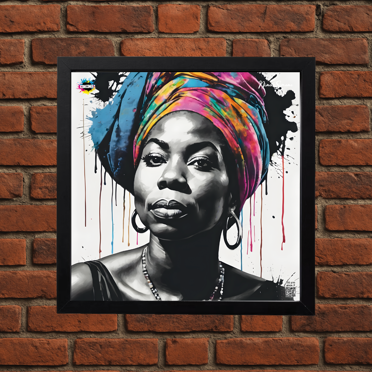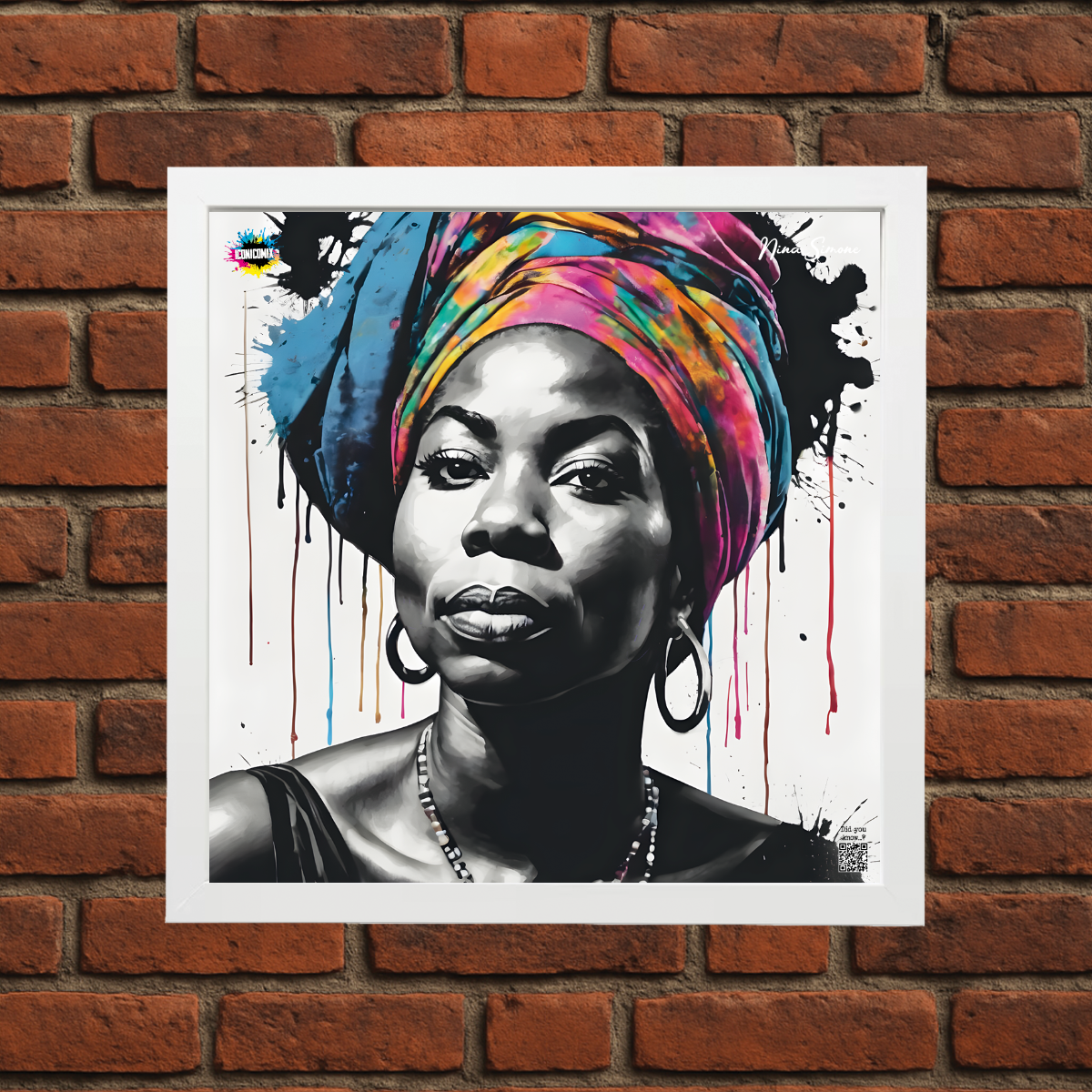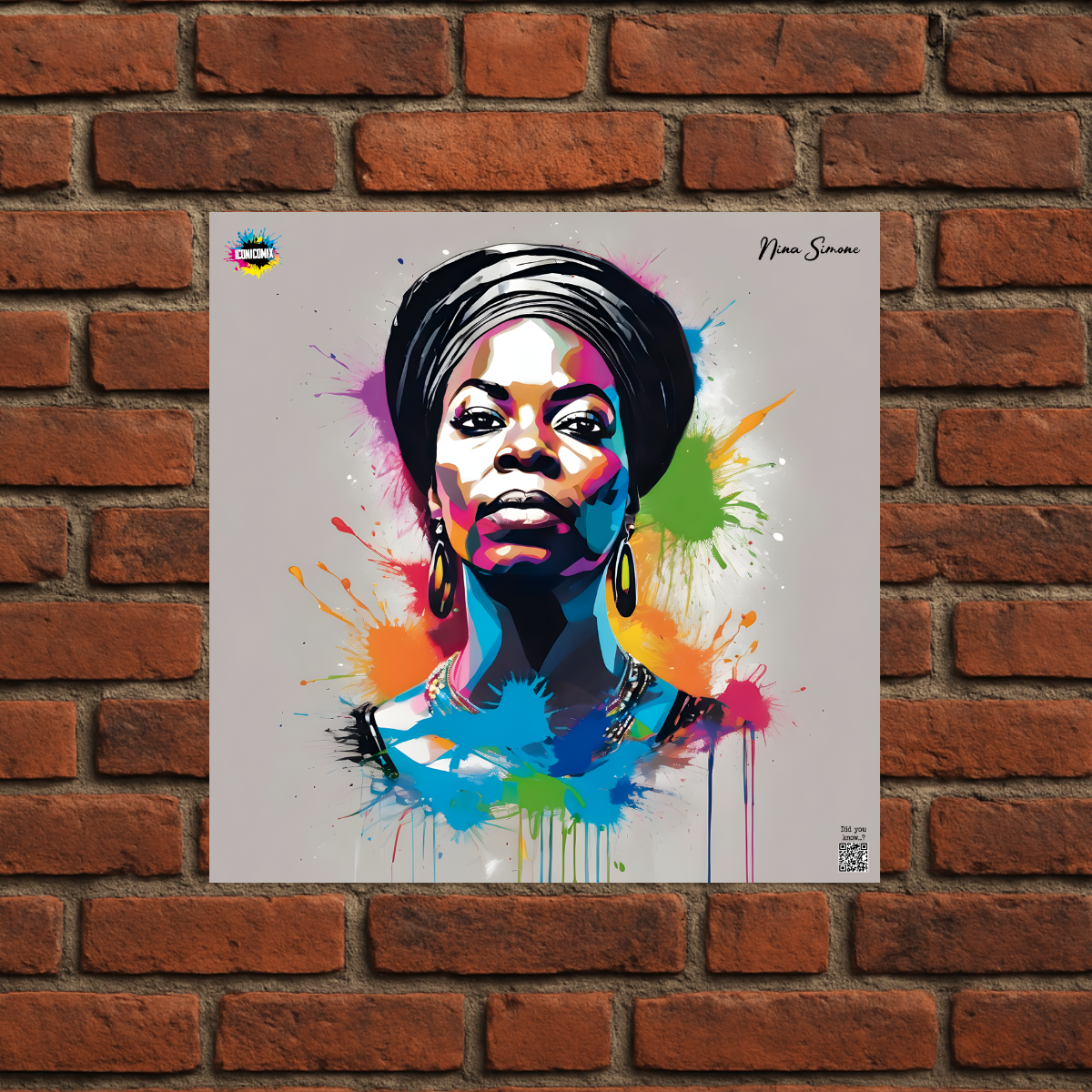 In ogni nostra grafica è presente anche un QR code che reindirizza al sito iconicomix.com, alla pagina ufficiale dell’icona che hai scelto. Una porta digitale che racconta la sua storia, le sue frasi e il suo mondo.