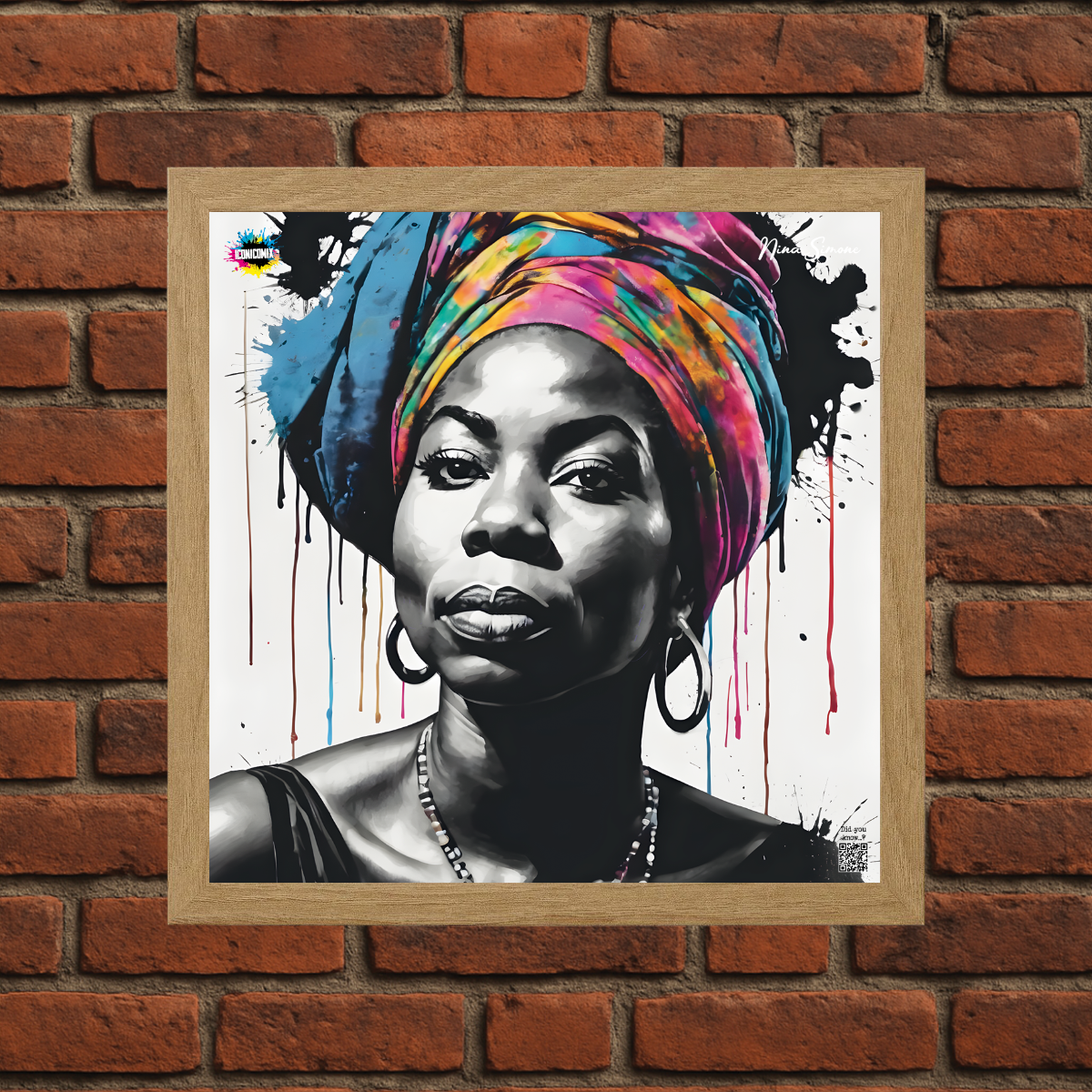 In ogni nostra grafica è presente anche un QR code che reindirizza al sito iconicomix.com, alla pagina ufficiale dell’icona che hai scelto. Una porta digitale che racconta la sua storia, le sue frasi e il suo mondo.