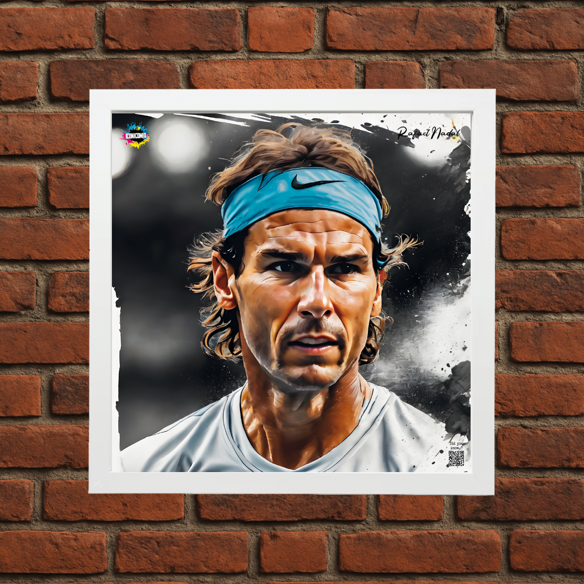 In ogni nostra grafica è presente anche un QR code che reindirizza al sito iconicomix.com, alla pagina ufficiale dell’icona che hai scelto. Una porta digitale che racconta la sua storia, le sue frasi e il suo mondo.
