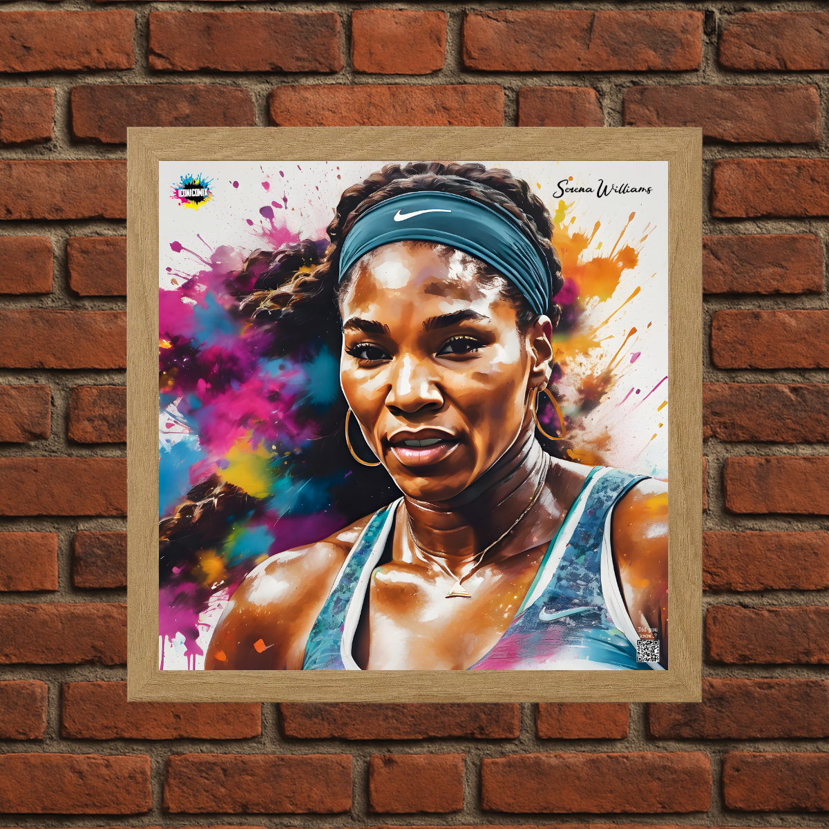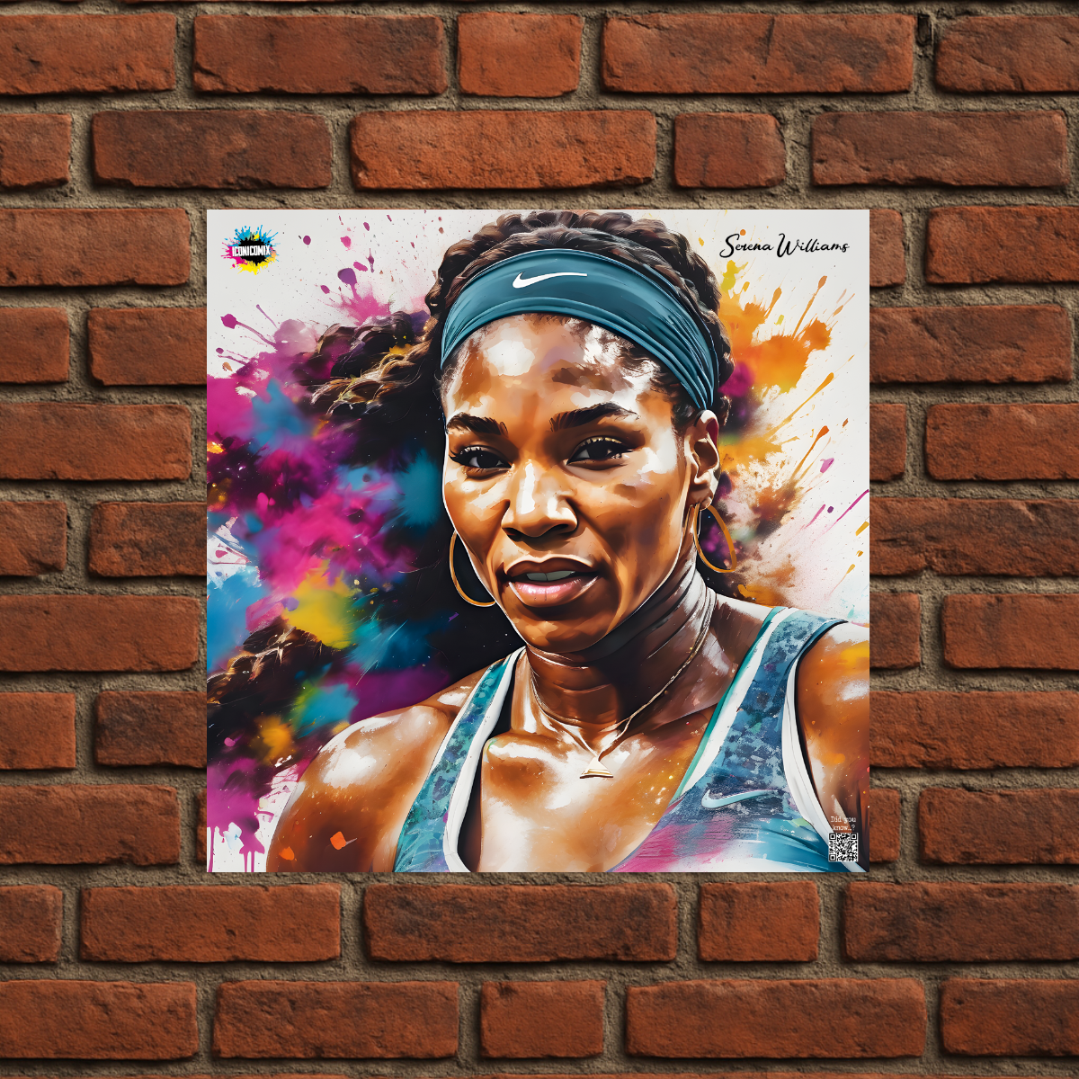 In ogni nostra grafica è presente anche un QR code che reindirizza al sito iconicomix.com, alla pagina ufficiale dell’icona che hai scelto. Una porta digitale che racconta la sua storia, le sue frasi e il suo mondo.