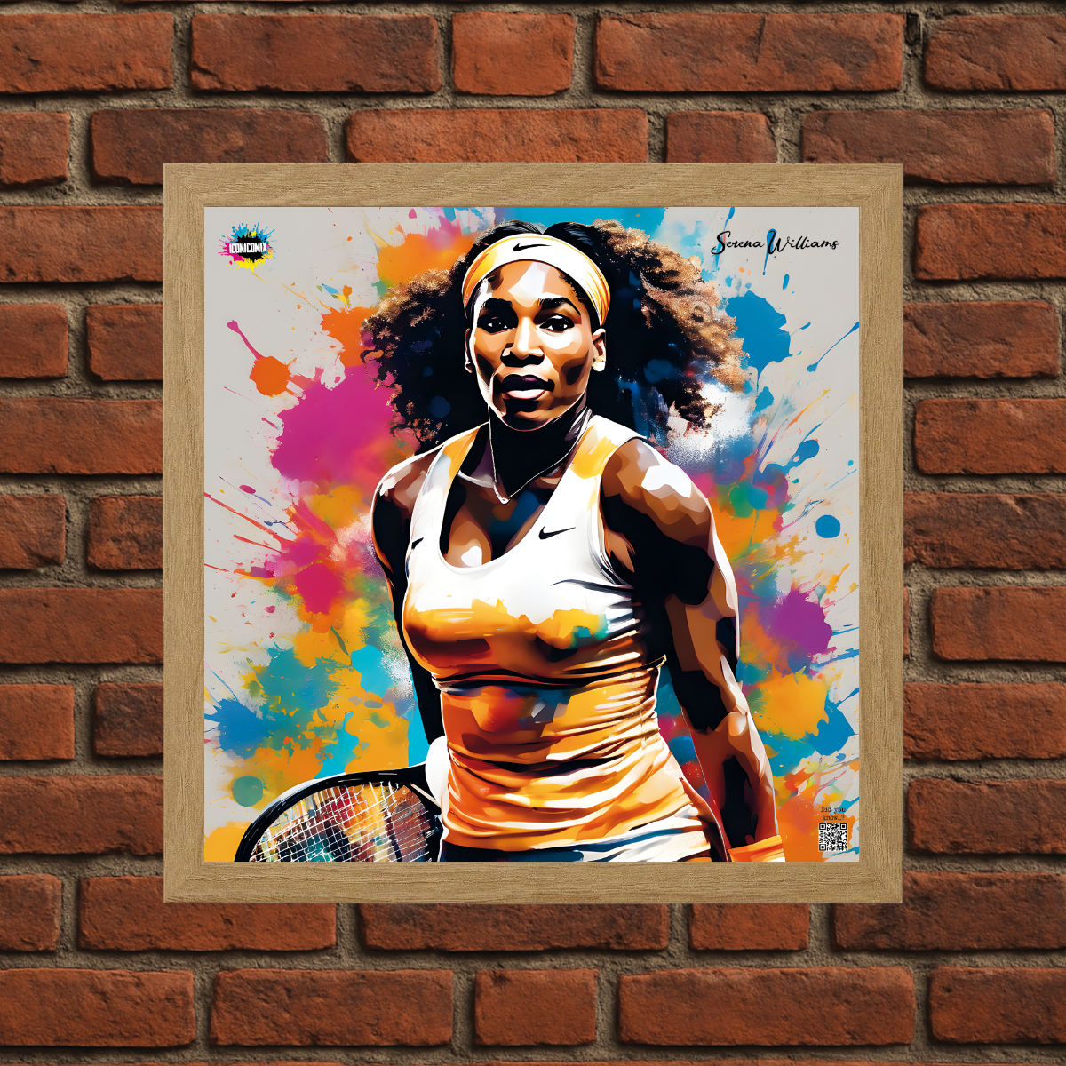 In ogni nostra grafica è presente anche un QR code che reindirizza al sito iconicomix.com, alla pagina ufficiale dell’icona che hai scelto. Una porta digitale che racconta la sua storia, le sue frasi e il suo mondo.