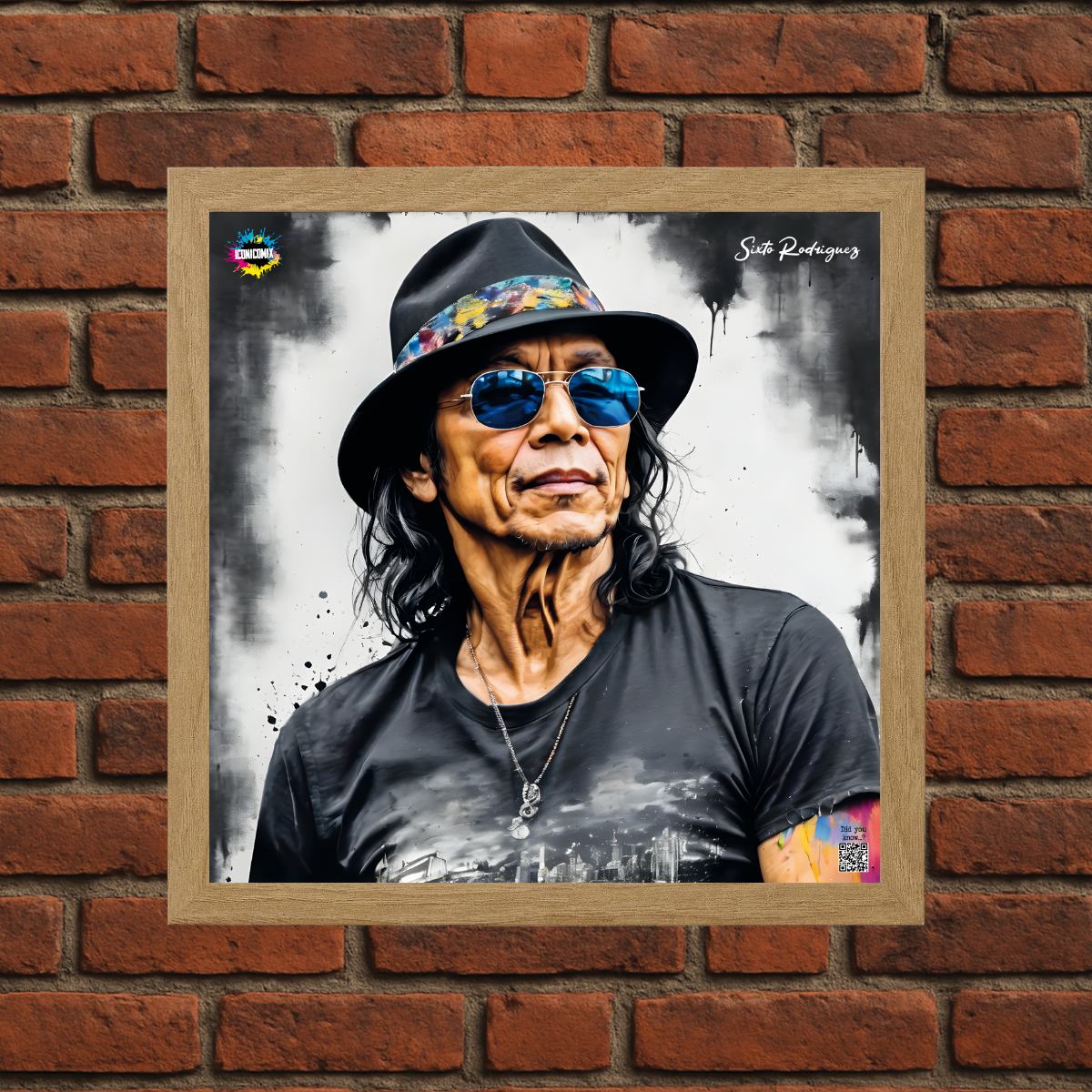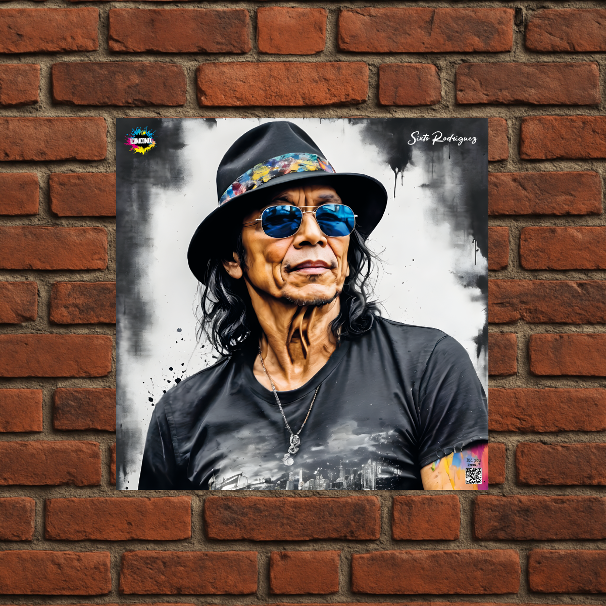 Cada uno de nuestros diseños incluye un código QR que te redirige a iconicomix.com, la página oficial del icono que has elegido. Un portal digital que narra su historia, sus frases y su universo.