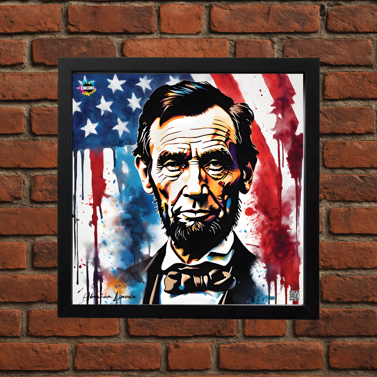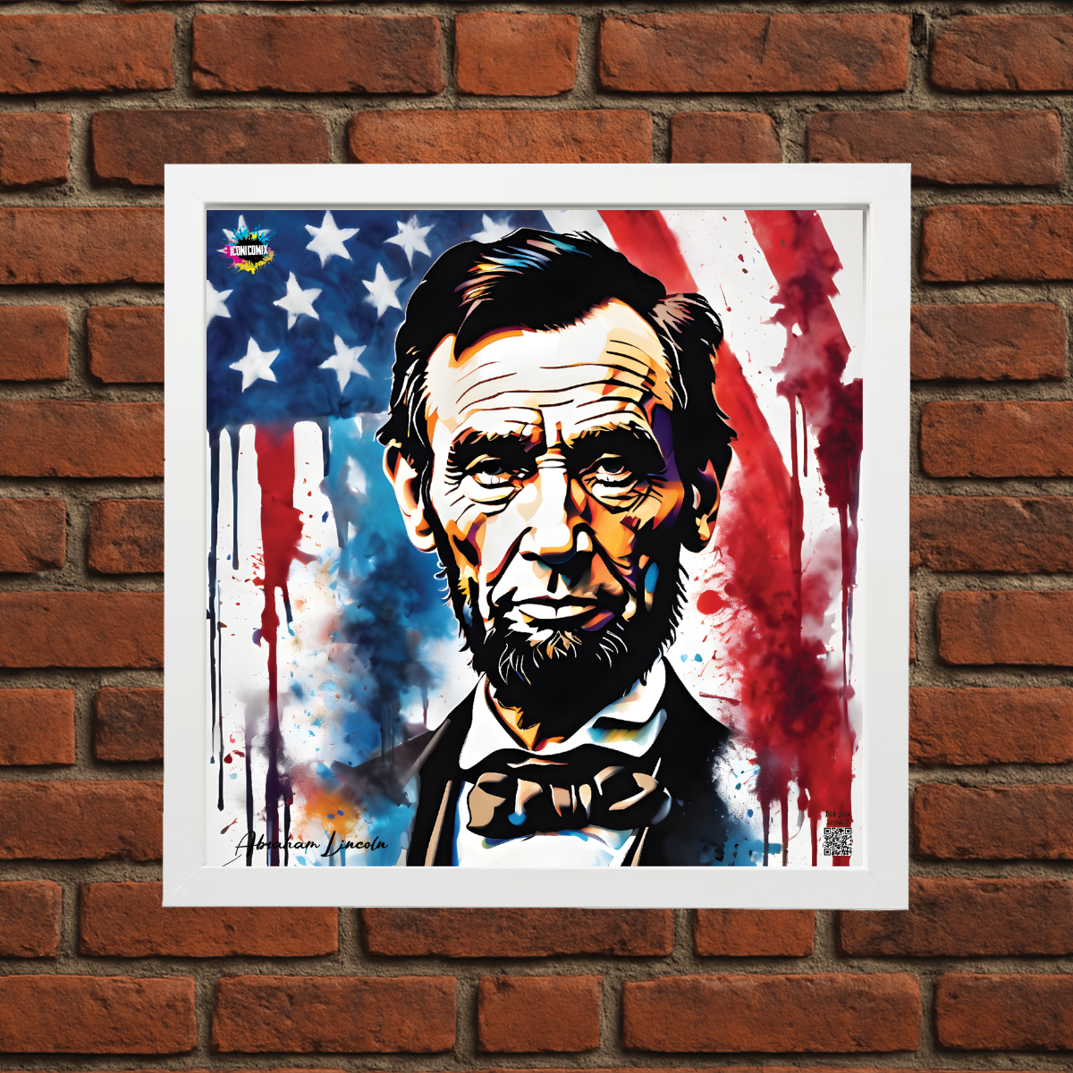 In ogni nostra grafica è presente anche un QR code che reindirizza al sito iconicomix.com, alla pagina ufficiale dell’icona che hai scelto. Una porta digitale che racconta la sua storia, le sue frasi e il suo mondo.