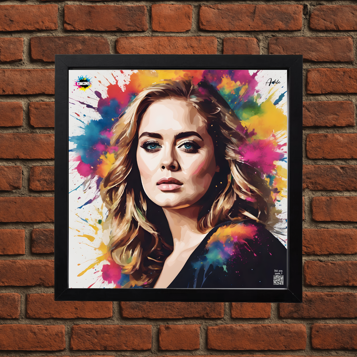 In ogni nostra grafica è presente anche un QR code che reindirizza al sito iconicomix.com, alla pagina ufficiale dell’icona che hai scelto. Una porta digitale che racconta la sua storia, le sue frasi e il suo mondo.